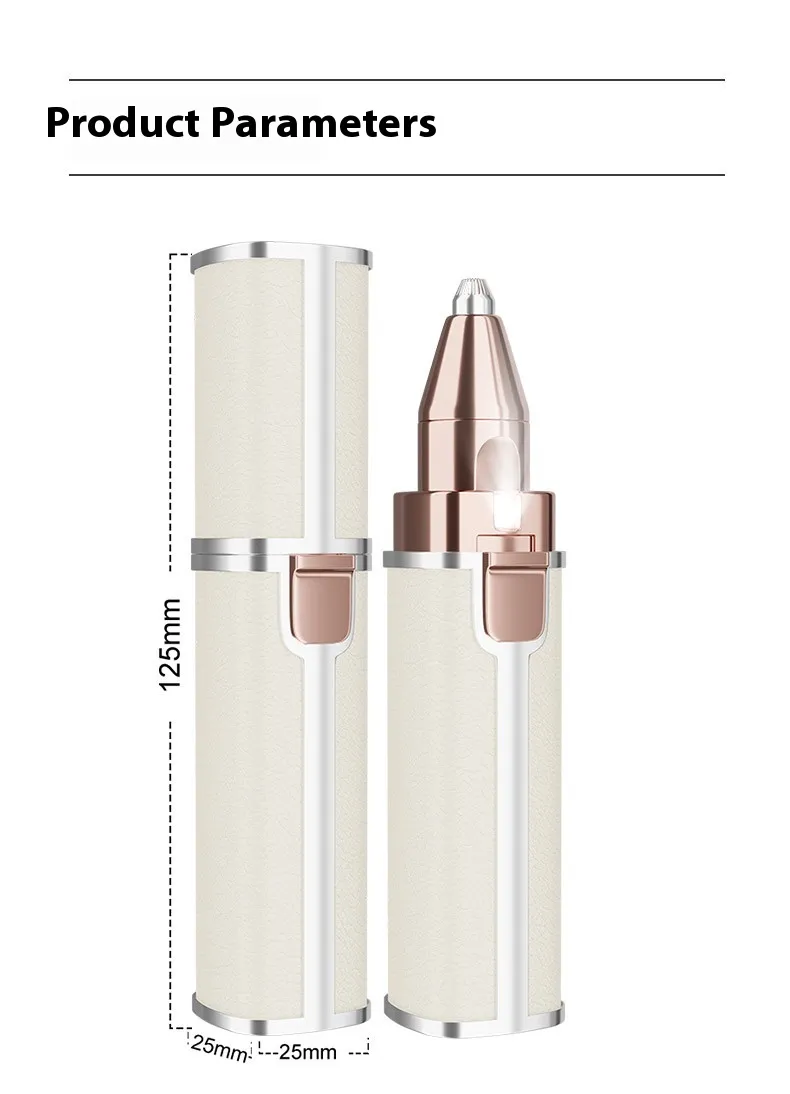 facial hair remover, eyebrow trimmer, portable grooming tool, USB rechargeable hair trimmer, eyebrow grooming device, facial hair removal pen, 2-in-1 grooming tool, portable facial hair trimmer