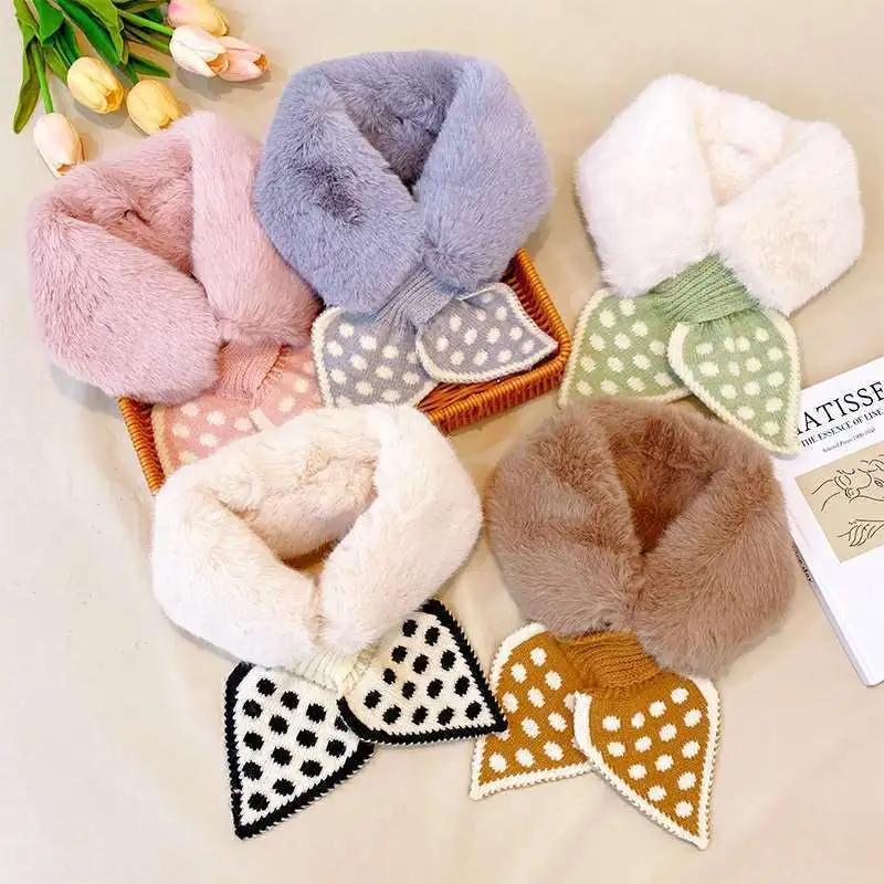 South Korea Plush Polka Dot Bow Tie Scarf Winter Winter