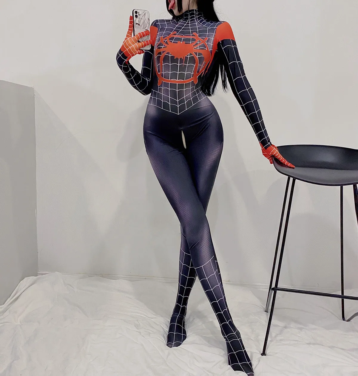 The Spider-Man costume is a full-body suit, covering you from head to toe. It includes a hooded mask with eye openings to maintain visibility while fully embracing the character’s appearance. The full-body design ensures a seamless look, and the suit can be easily put on or taken off, usually with a zipper or stretchy material.