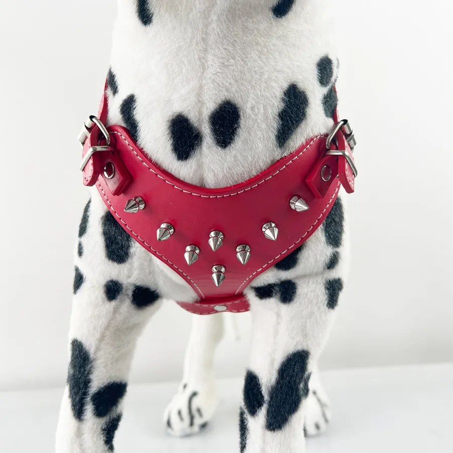 The spiked design merges rugged aesthetics with pet comfort. Unlike decorative harnesses that sacrifice strength for looks, this harness combines tactical appeal with functional stability. It enhances handling leverage without restricting movement, making it suitable for hiking, running, or general everyday use.