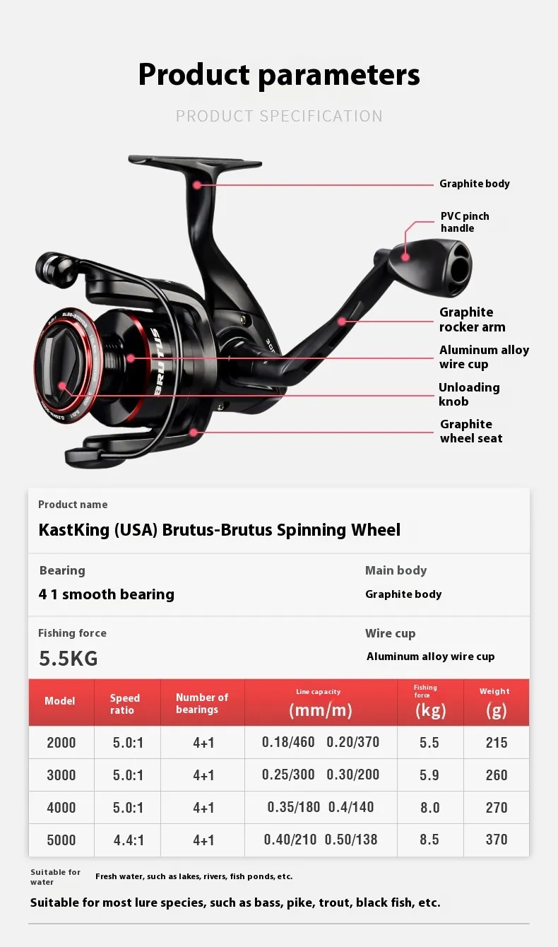 A Spinning Reel is a fantastic choice for anyone looking for reliable, versatile, and smooth performance in their fishing gear. Whether you're a beginner learning the ropes or an experienced angler looking for precision, this reel offers an excellent balance of performance, durability, and ease of use. Its versatility makes it suitable for both freshwater and saltwater fishing, ensuring you’re ready for any fishing adventure.
