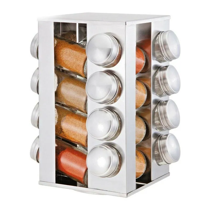 Space-Saving Design: Stores multiple spices in a compact, rotating unit that takes up minimal counter space.