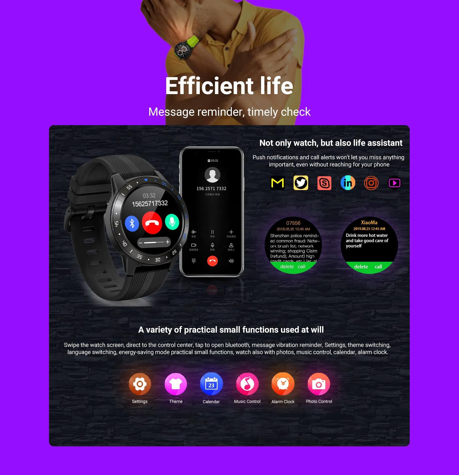 - Smart Notifications: Receive call, message, and app alerts on your wrist.