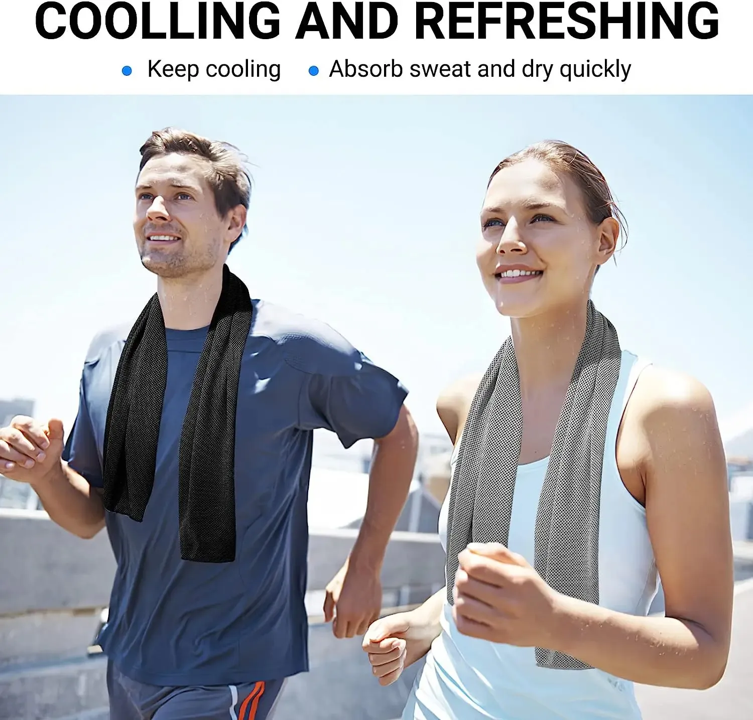 【EASY TO USE】-- Super Cooling Towels for Sports, Fitness, Gym & Yoga, gadget for sunstroke prevention and cooling relief in summer.Soak for 1 minute, wring out excess water, snap it few times and is ready to use