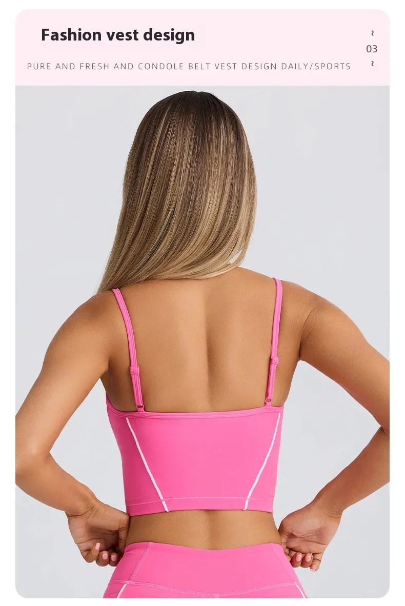 Elevate your workout wardrobe with the Sports Underwear Vest Shorts Spaghetti Strap Bra, designed for women who want both style and performance. This fitness top features a spaghetti strap design with a beauty back style, offering a sleek, feminine look while providing excellent support during high-intensity workouts. Perfect for yoga, pilates, running, or gym sessions in New Zealand.