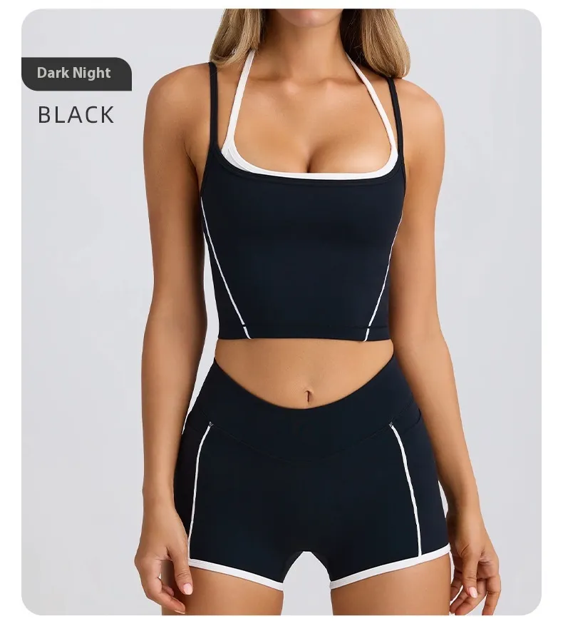 Made from high-elasticity, breathable fabric, this sports bra ensures a snug and comfortable fit that moves with your body. Its tight and supportive design helps maintain posture and reduce discomfort, while the moisture-wicking material keeps you cool and dry during exercise. The vest-style construction and shorts combination offer a streamlined, fashionable silhouette, making it versatile enough to wear alone or layered under activewear tops.