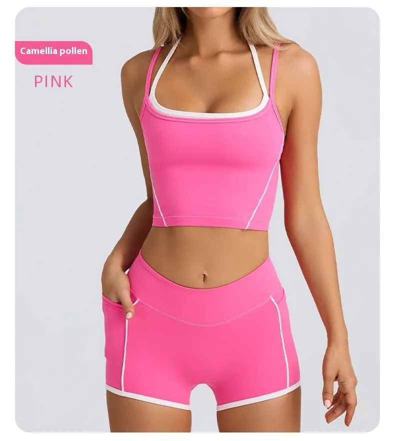 Sports Underwear Vest Shorts Spaghetti Strap Bra Beauty Back Tight High Elastic Fitness