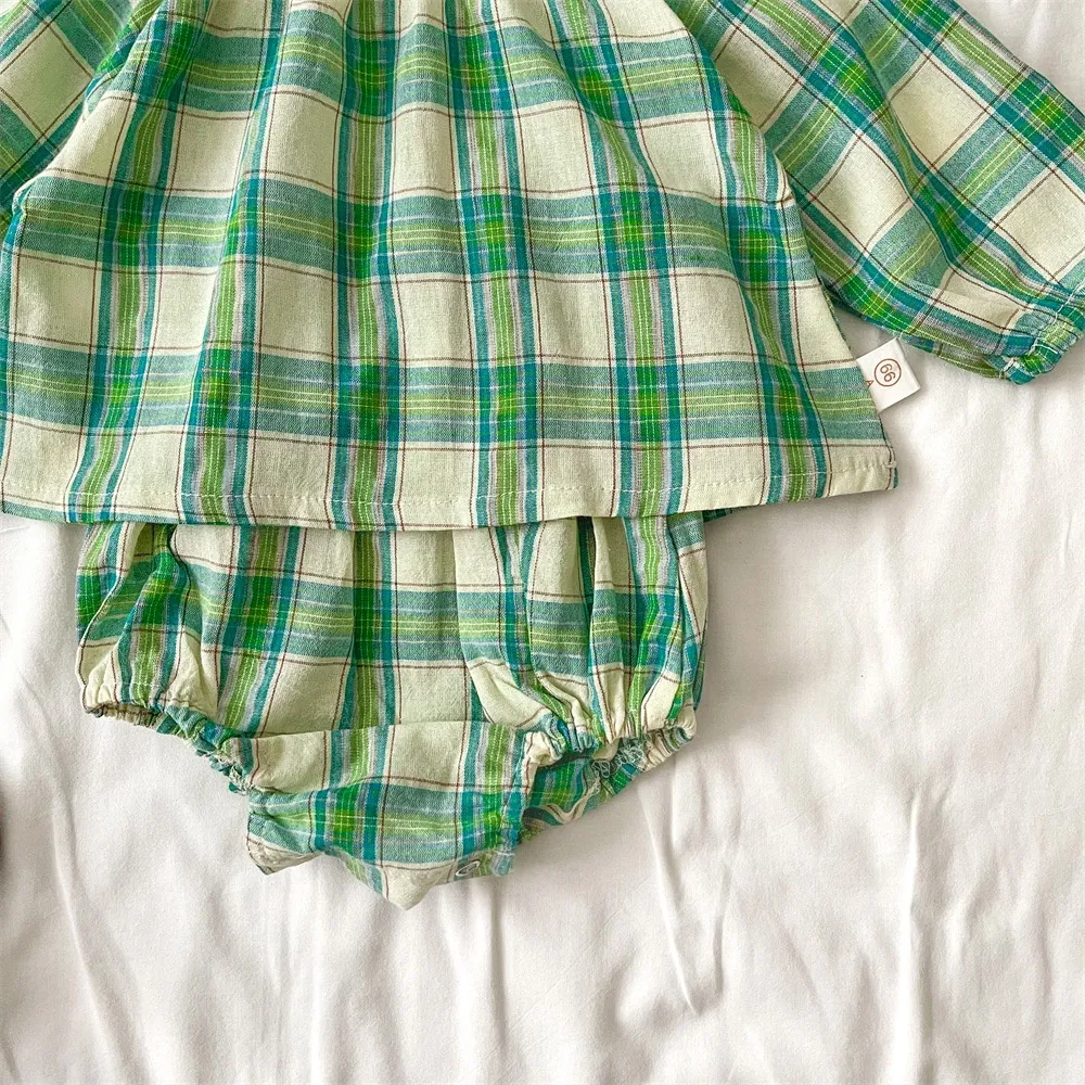 Classic Green Plaid Design: The timeless green plaid pattern adds a touch of sophistication to your baby's wardrobe.​