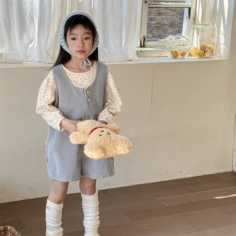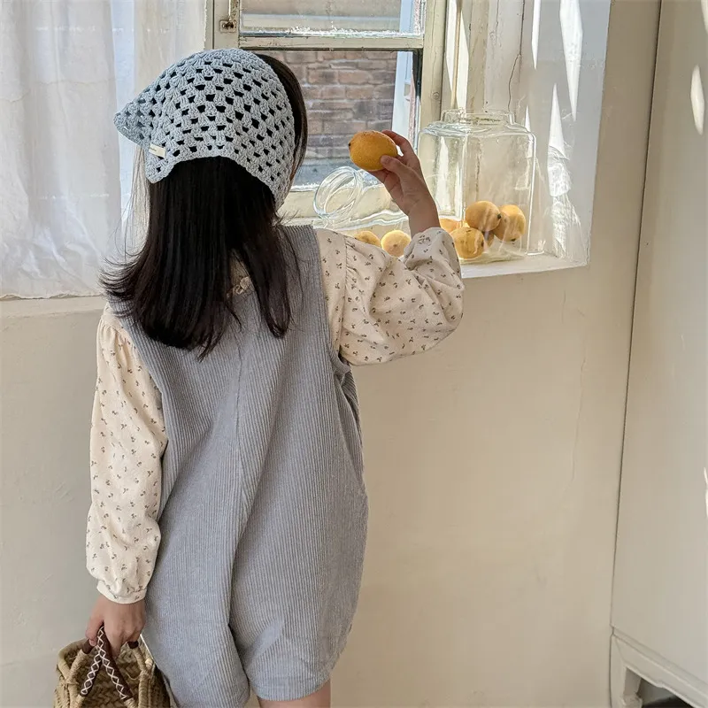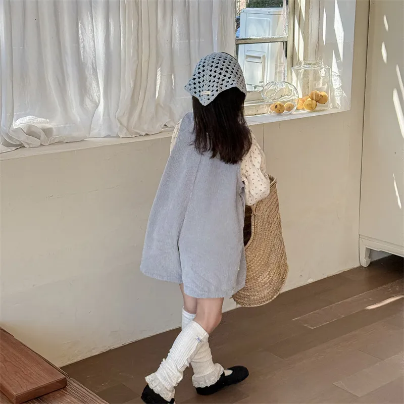 Whether your child is heading to a casual outing, a playdate with friends, or a family gathering, the Spring Girls' Five-Point Corduroy Jumpsuit provides versatility. The five-point design adds a trendy touch, while the soft and breathable corduroy material ensures your little one stays comfortable throughout the day. The jumpsuit's simple yet fashionable look makes it easy to pair with various accessories, from hats to cute shoes.