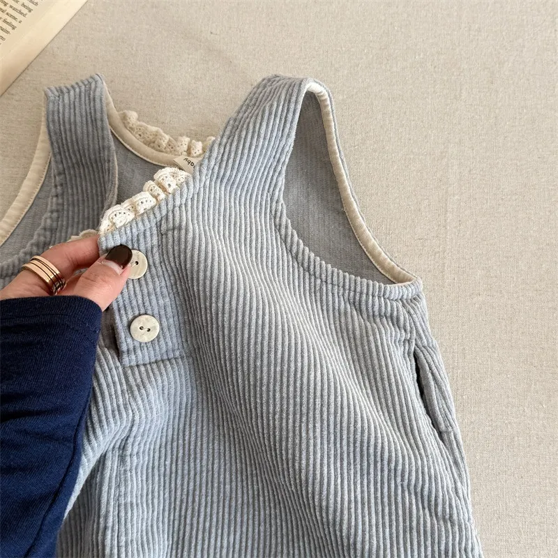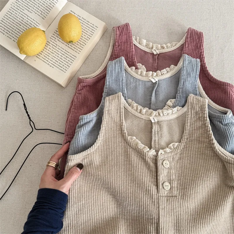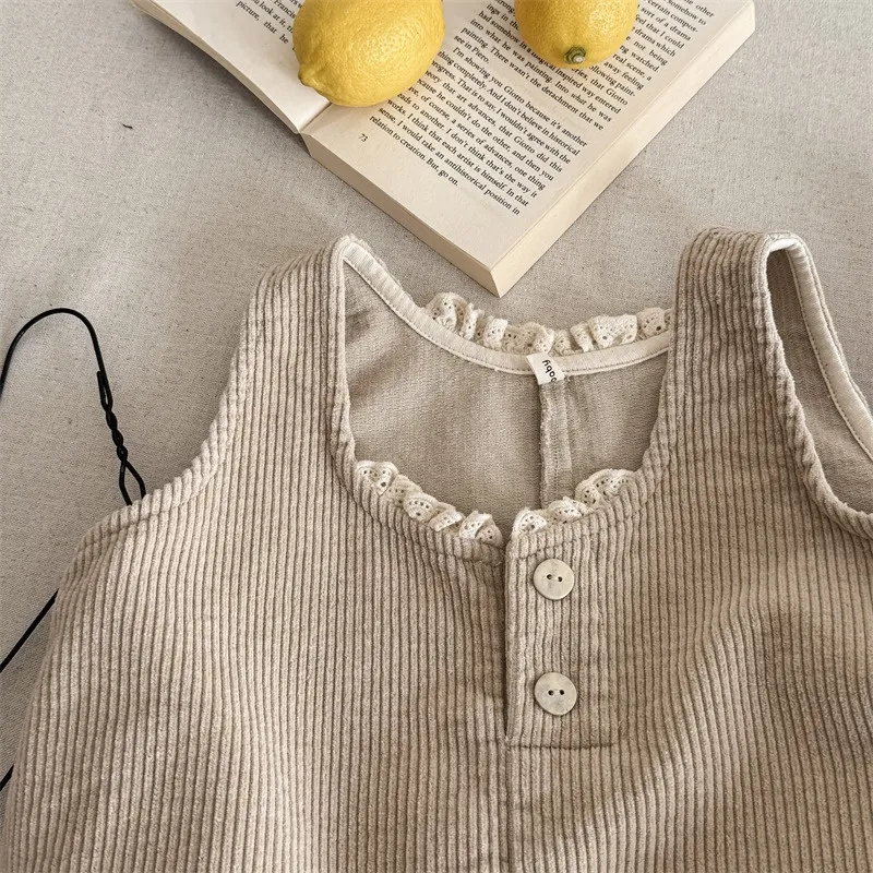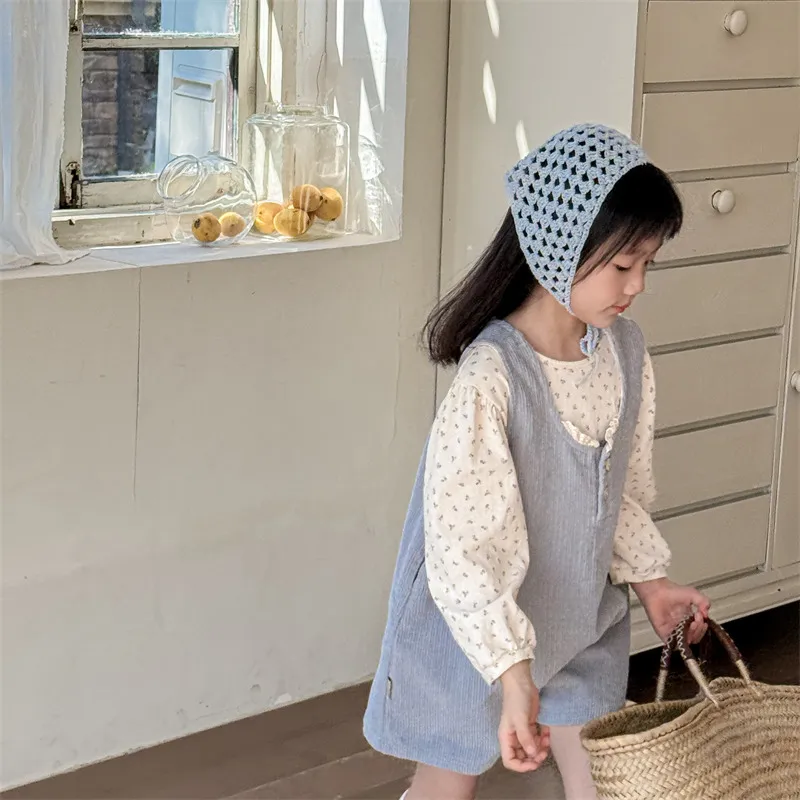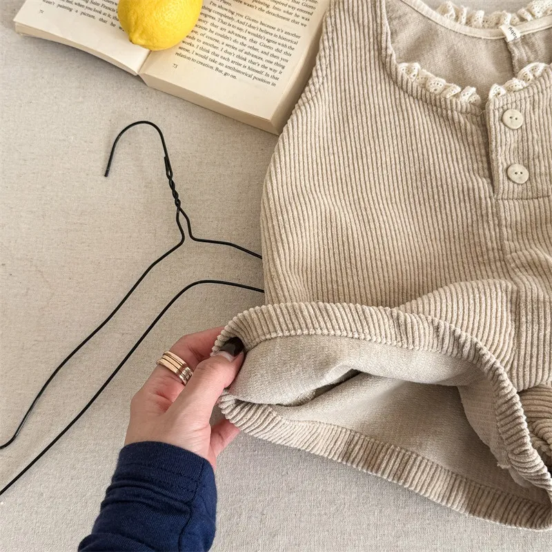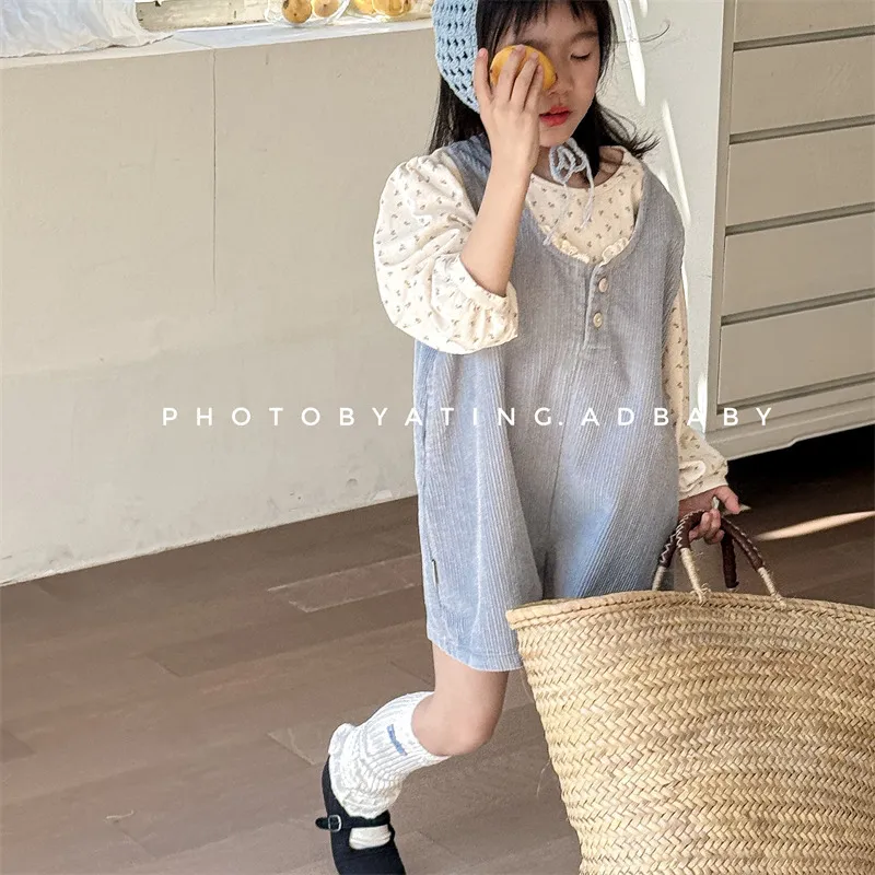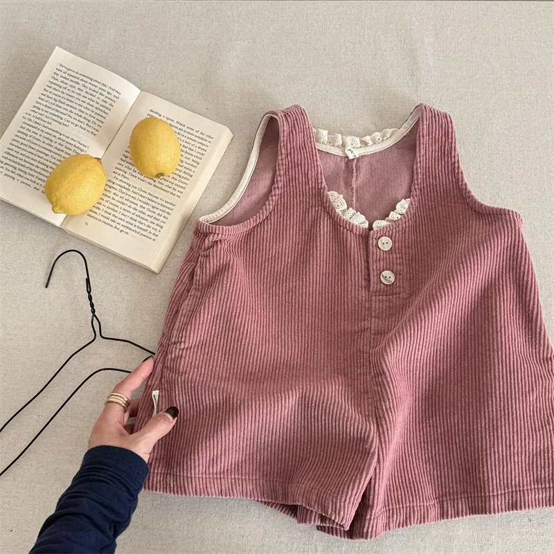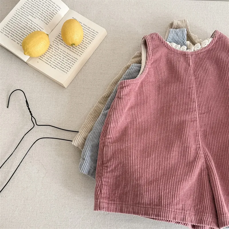 Spring Girls' Five-Point Corduroy Jumpsuit