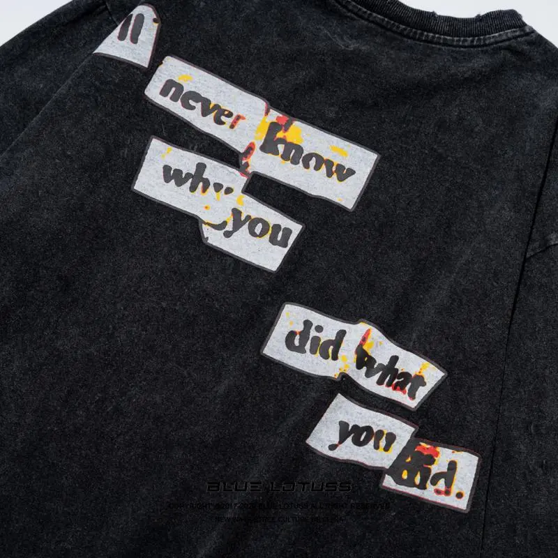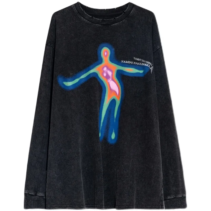 Spring Loose Old Letters Printed Long-Sleeved T-Shirt