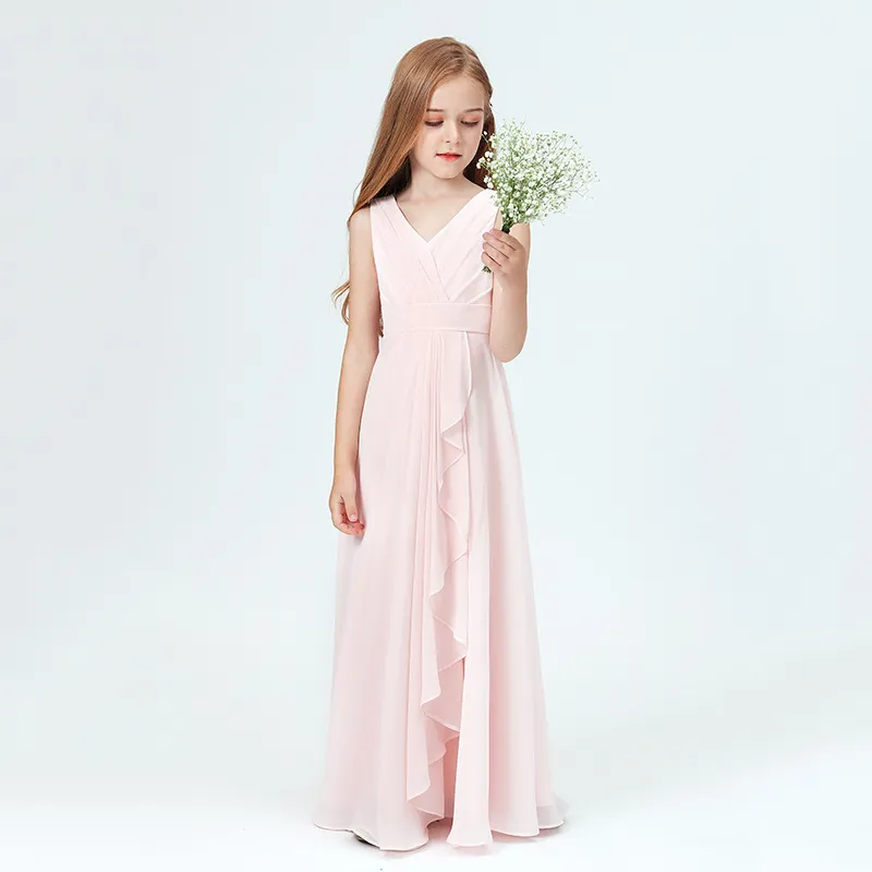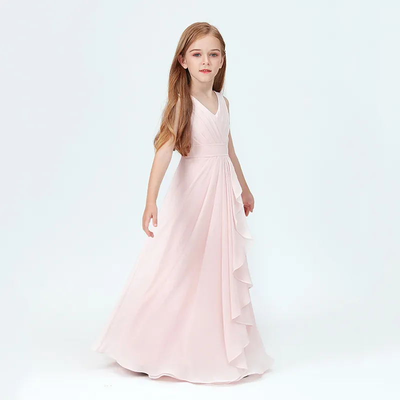 Let your child shine with effortless grace in our Spring Medium and Large Children Chiffon Sleeveless Full Dress.