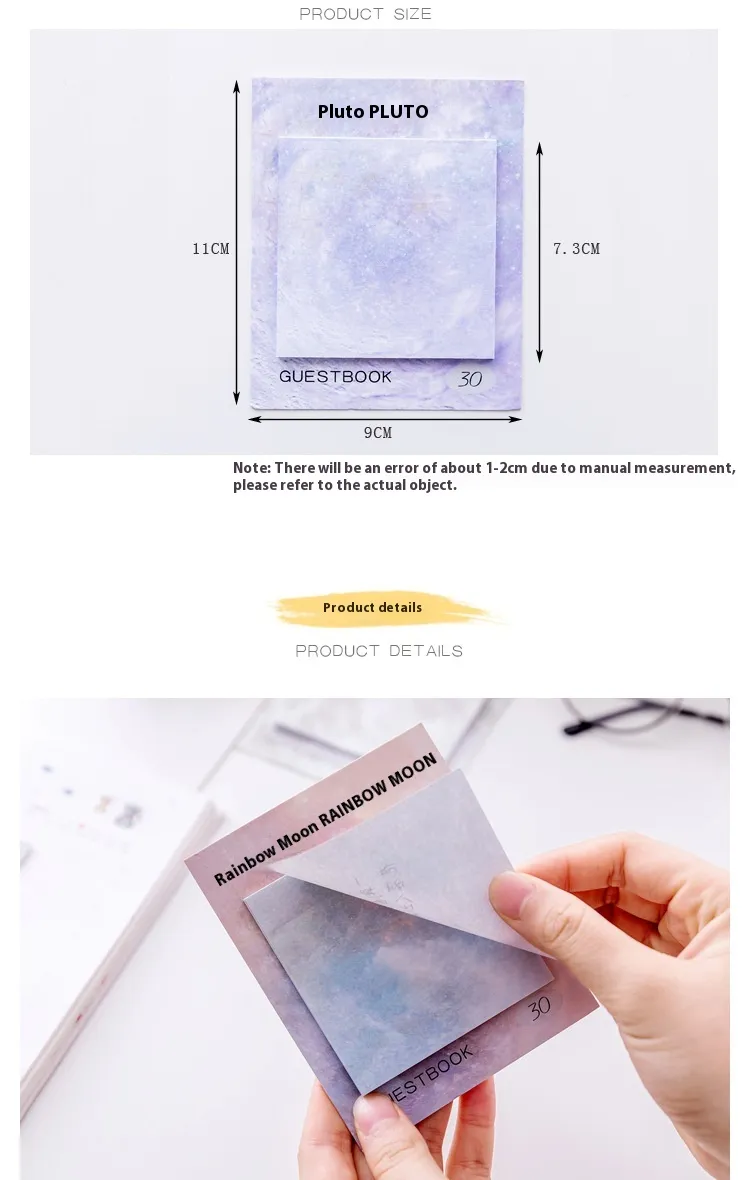 The Square Beautiful Planet Sticky Notes Tearable Sticky Oil Painting Notepad is the perfect choice for anyone looking to combine practicality with artistic flair. With its beautiful design and functional sticky note features, this notepad allows you to stay organized while adding a touch of elegance to your space. Whether you're a student, professional, or stationery enthusiast, these unique sticky notes are designed to enhance your work environment and make your organization tasks more enjoyable.