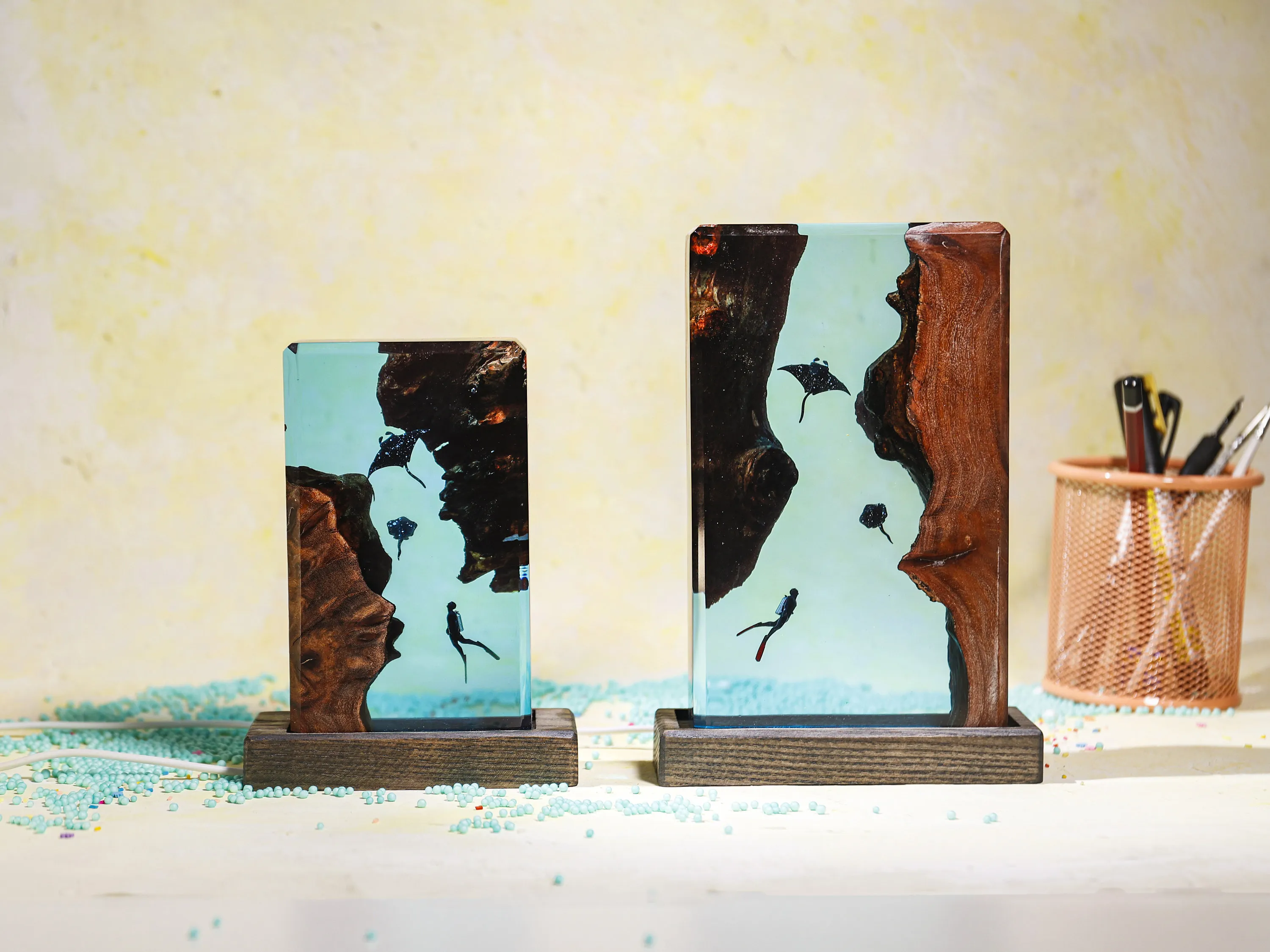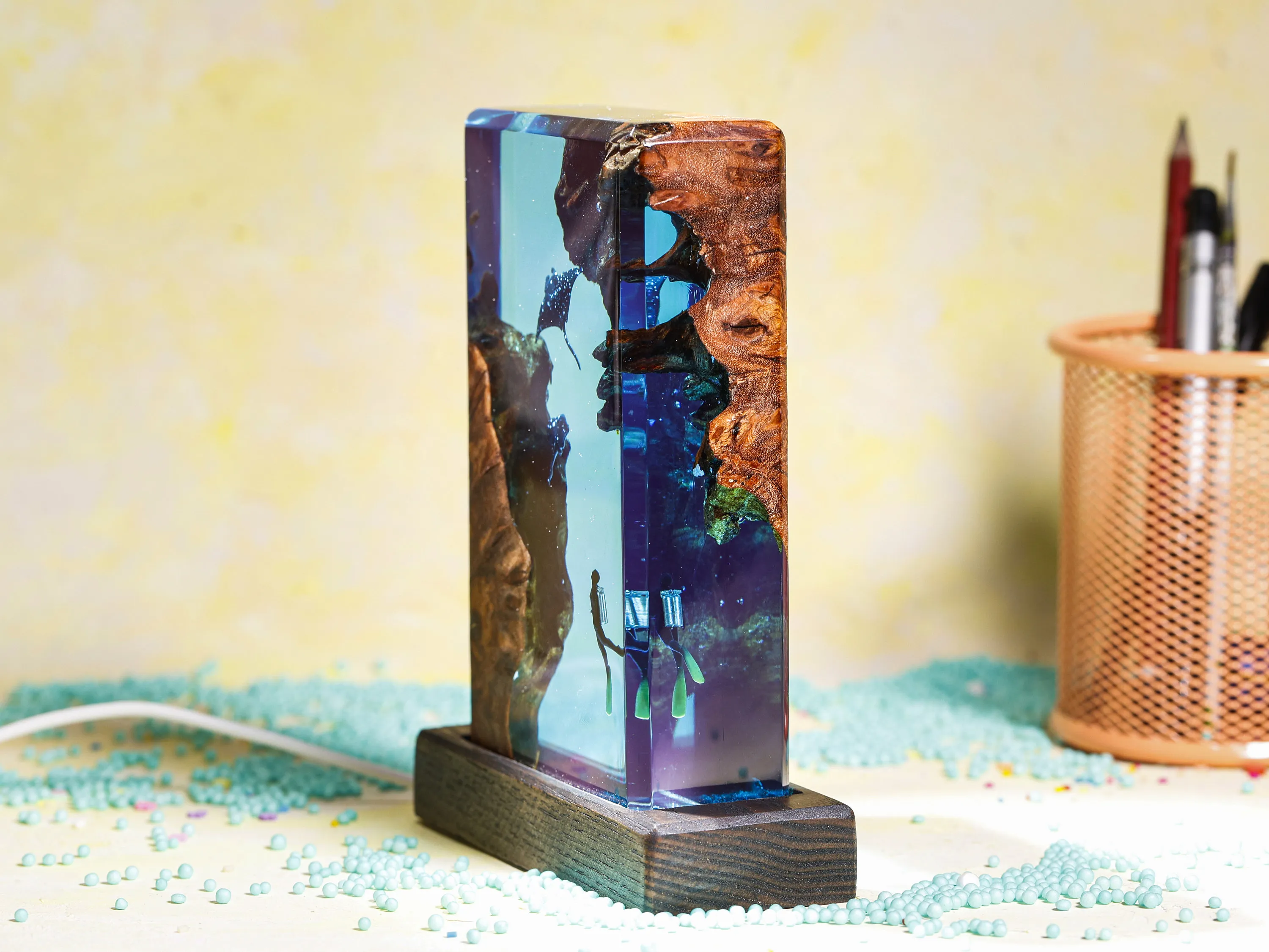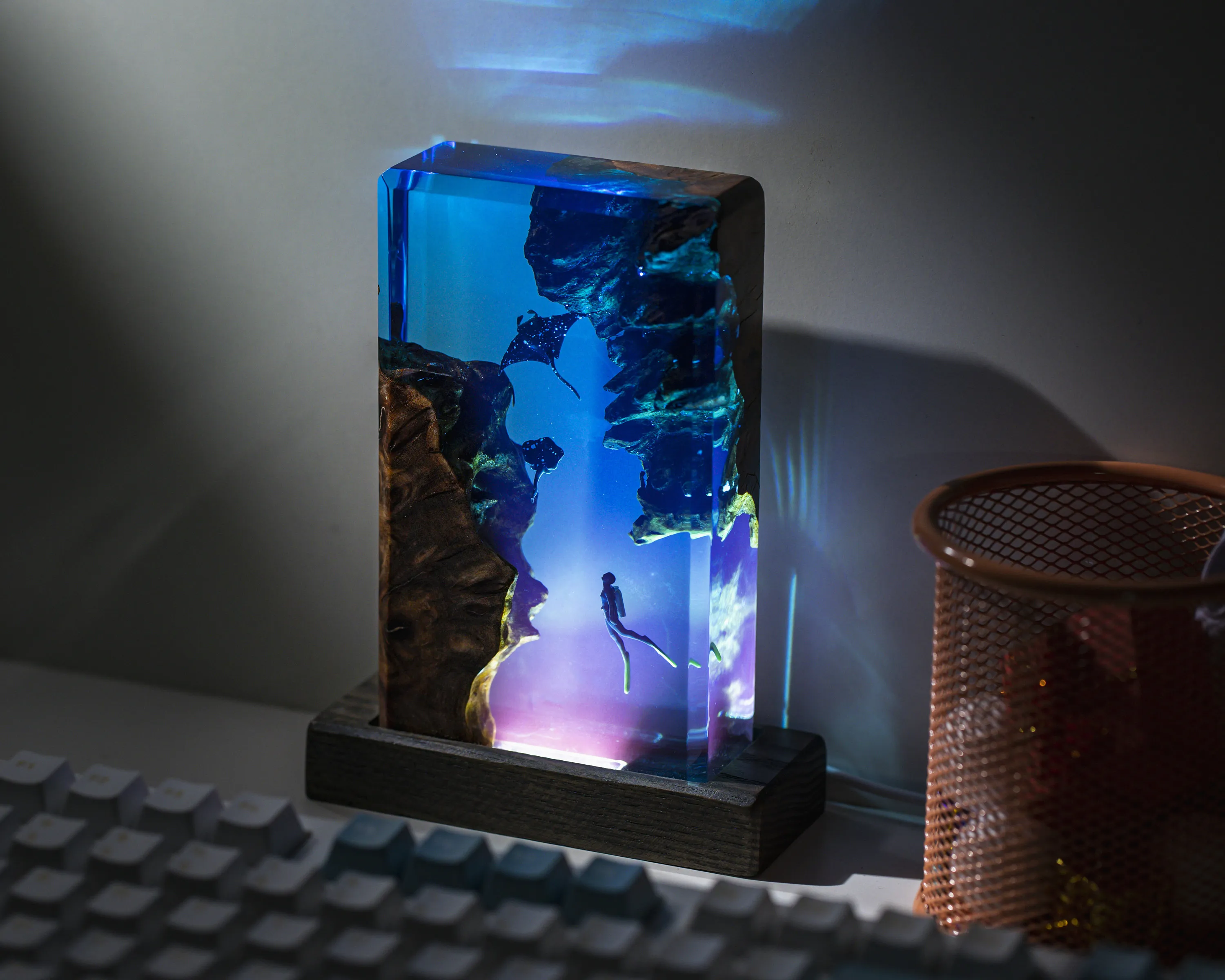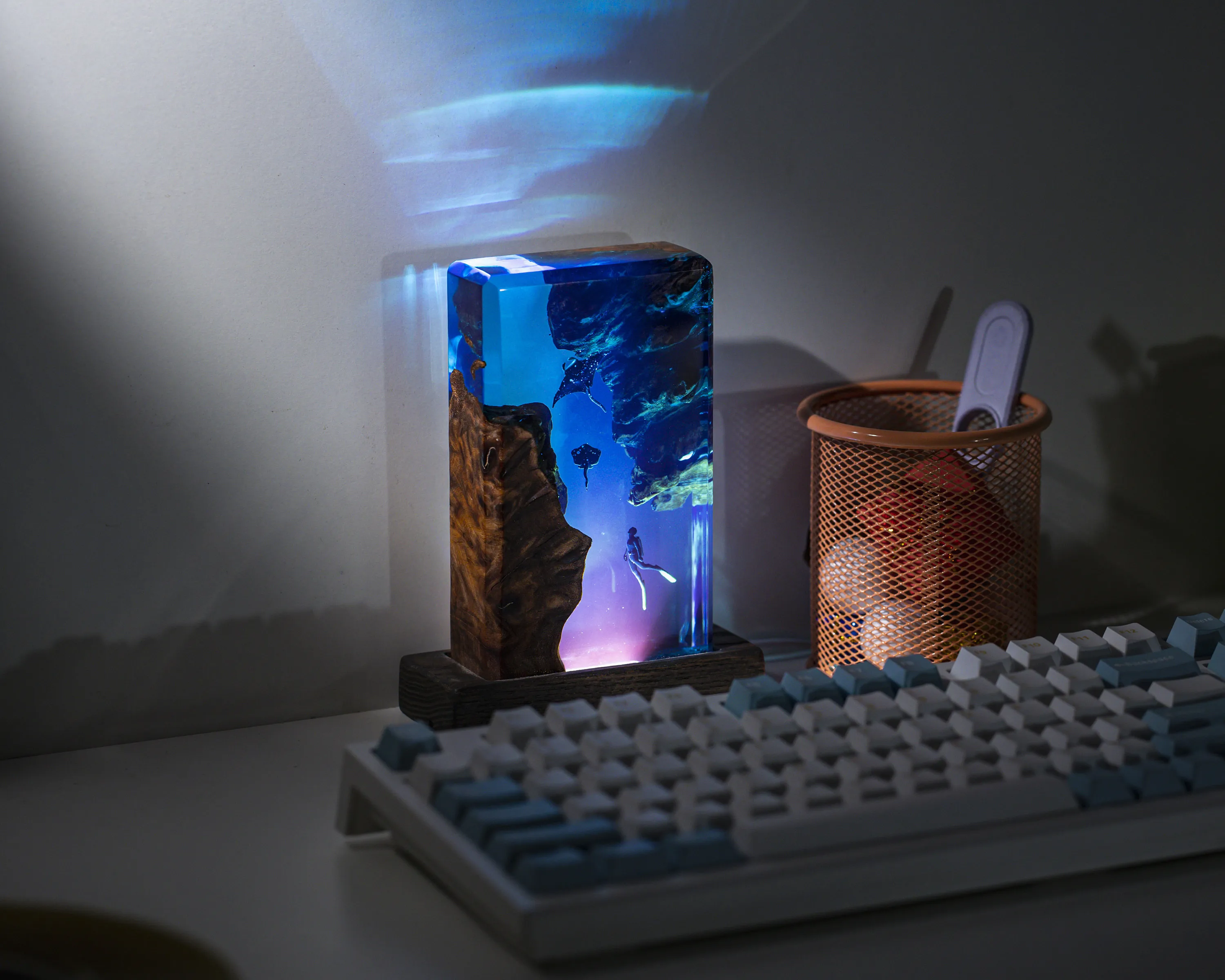 Square Wood Resin Ocean Small Night Lamp