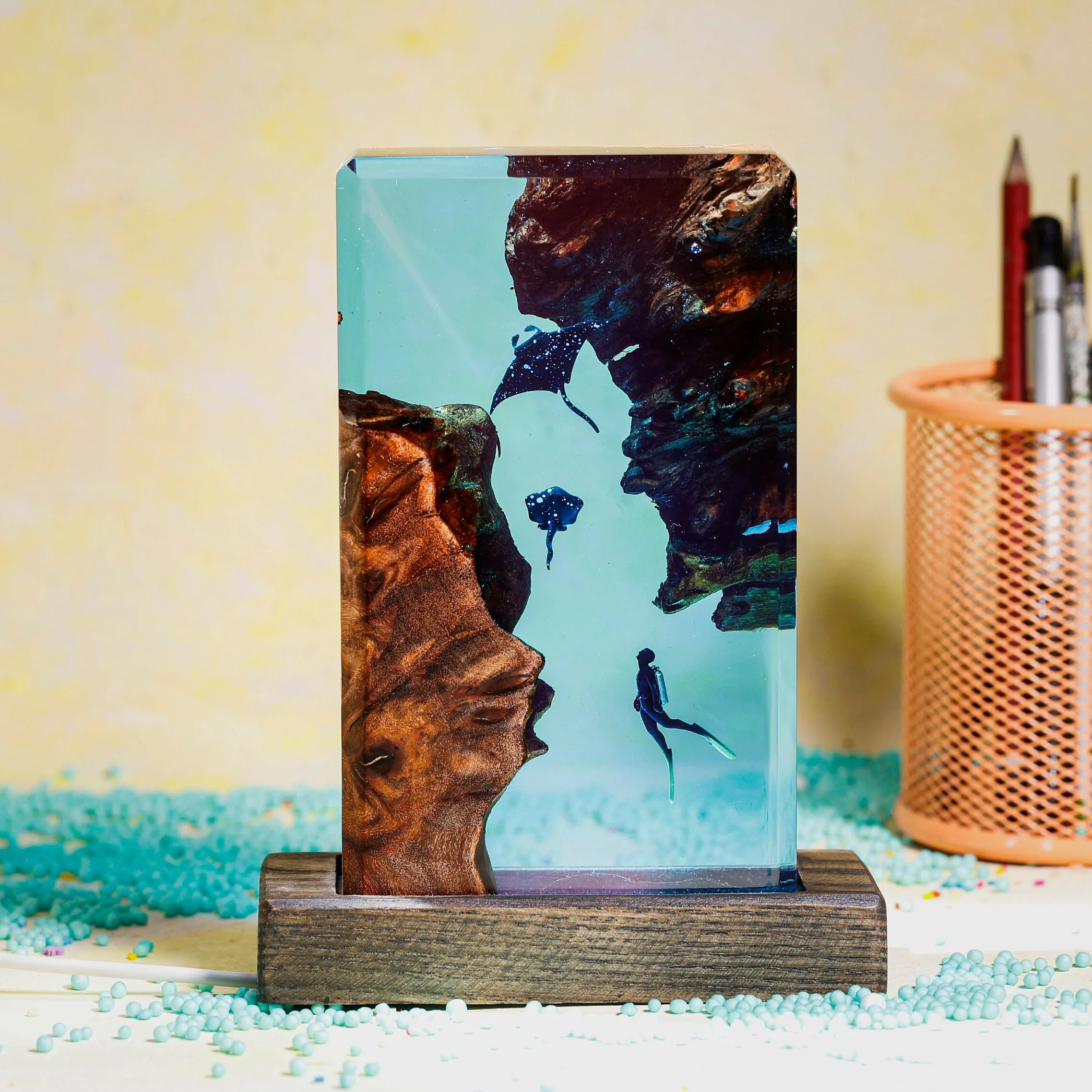 USB rechargeable for convenience, the Square Wood Resin Ocean Lamp is easy to use and portable, allowing you to move it from room to room or take it with you for ambient lighting anywhere you go. Whether you’re looking for a unique nightlight or a decorative accent for your coastal-inspired space, this lamp delivers both beauty and practicality. It also makes a thoughtful gift for nature lovers or anyone who appreciates handcrafted, artisanal home décor.