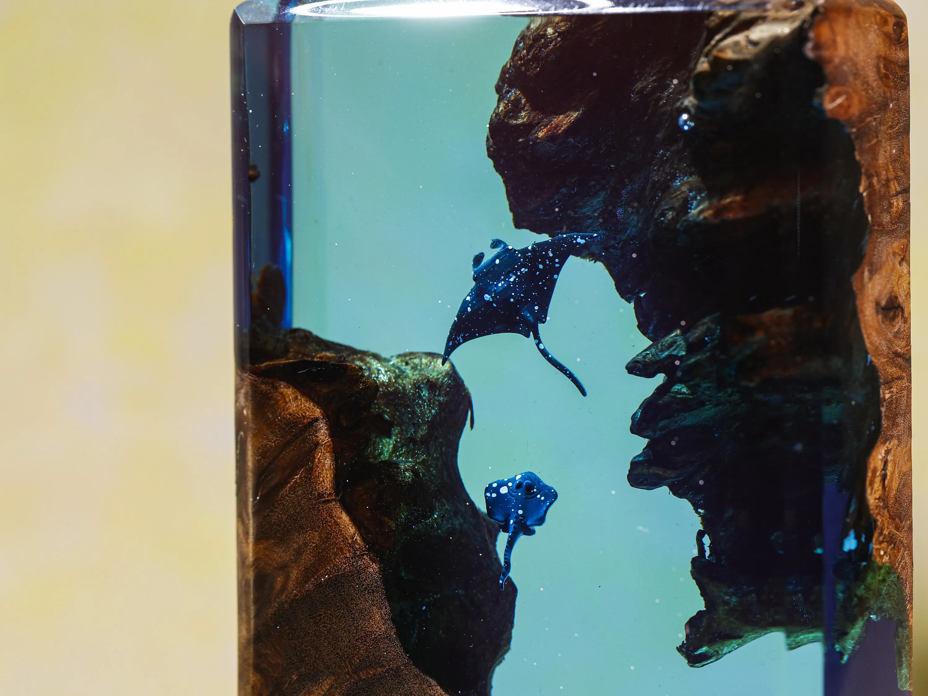 Square Wood Resin Ocean Small Night Lamp