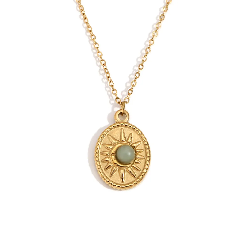 Stainless Steel 18K Gold Plating Oval Sun Natural Stone Pendant Necklace: A Timeless Piece of Luxury and Elegance