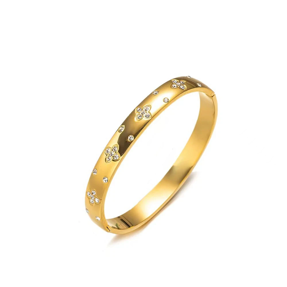 The Zirconia flower accents add a sparkling and sophisticated touch to the bracelet, making it suitable for both special occasions and everyday wear. With its adjustable design, it’s easy to find the perfect fit for your wrist, ensuring both comfort and style. If you're looking for timeless jewelry that blends elegance, luxury, and affordability, this bangle bracelet is the perfect choice.