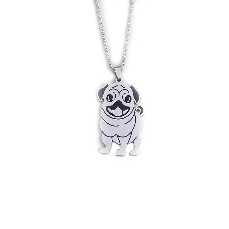 Stainless steel cartoon pug pendant necklace