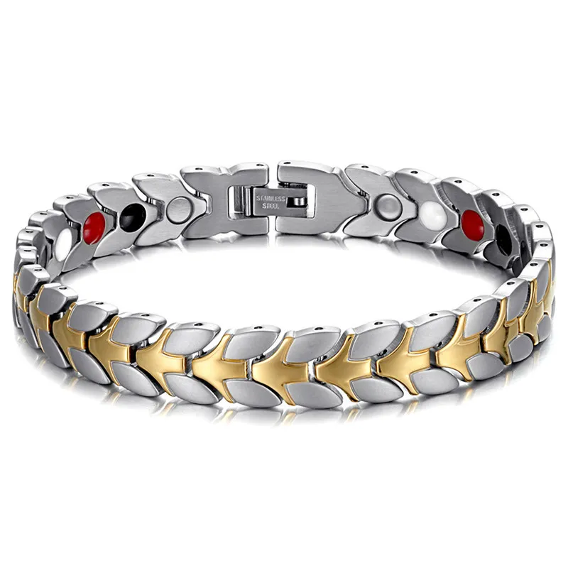 Magnetic Therapy: The bracelet features strategically placed magnets that may help improve blood circulation, reduce