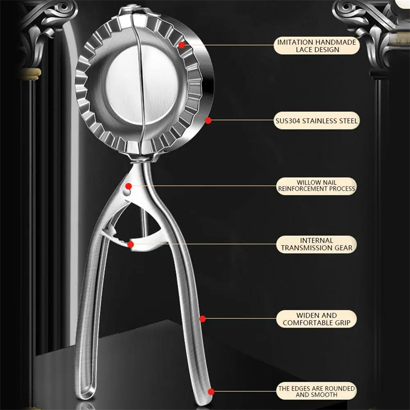 - Make perfect dumplings effortlessly with our Stainless Steel Dumpling Maker. This manual kitchen gadget is designed for pressing and shaping dumpling skins, making it an essential tool for home baking and noodle preparation.