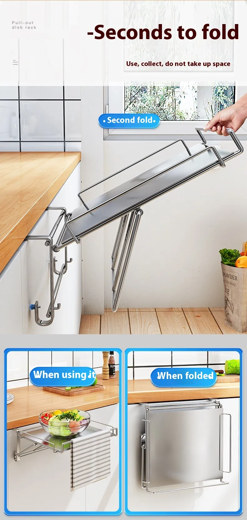 Stainless Steel Foldable Kitchen Countertop Commodity Shelf