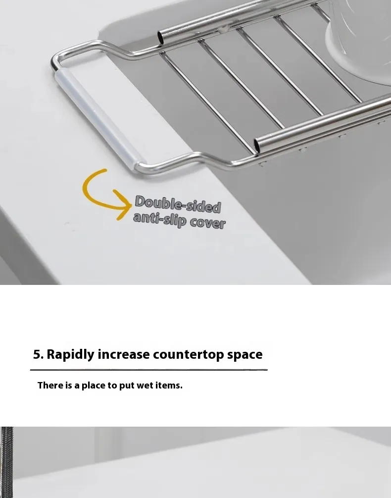 custom fit for your kitchen space. Simply extend or retract the rack as needed to accommodate your sink.