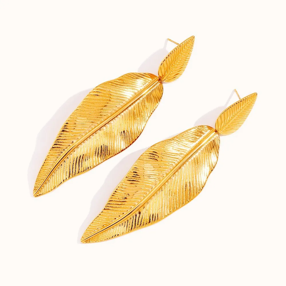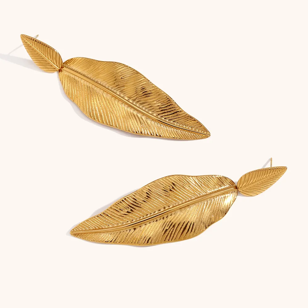 Stainless Steel Leaf Pendant Metal Leaf Texture Earrings