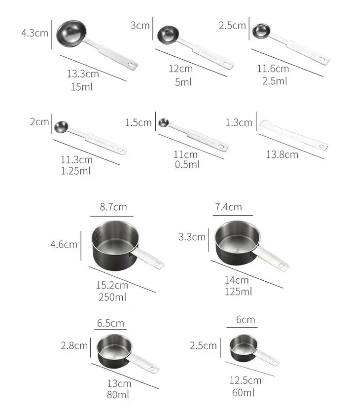 Crafted from durable, rust-resistant stainless steel, these measuring cups and spoons provide long-lasting strength and reliability. The sleek design not only looks elegant in your kitchen but also withstands daily use without tarnishing or bending.