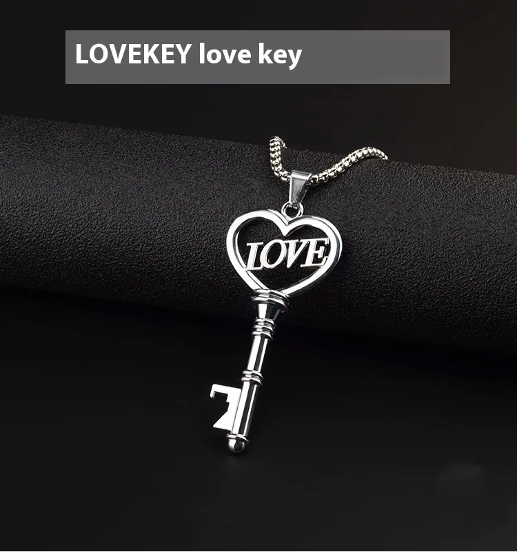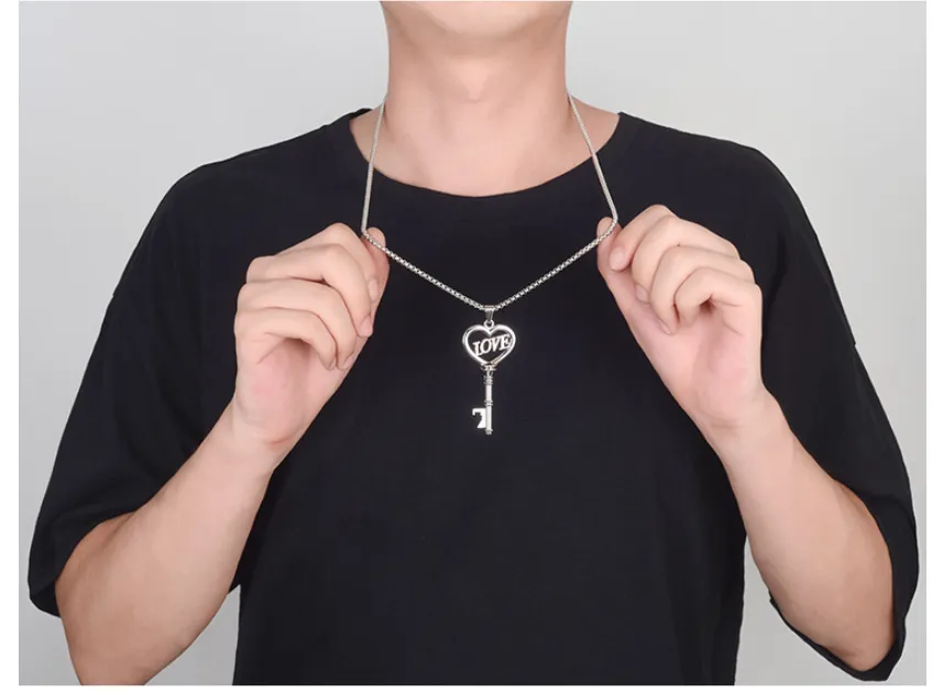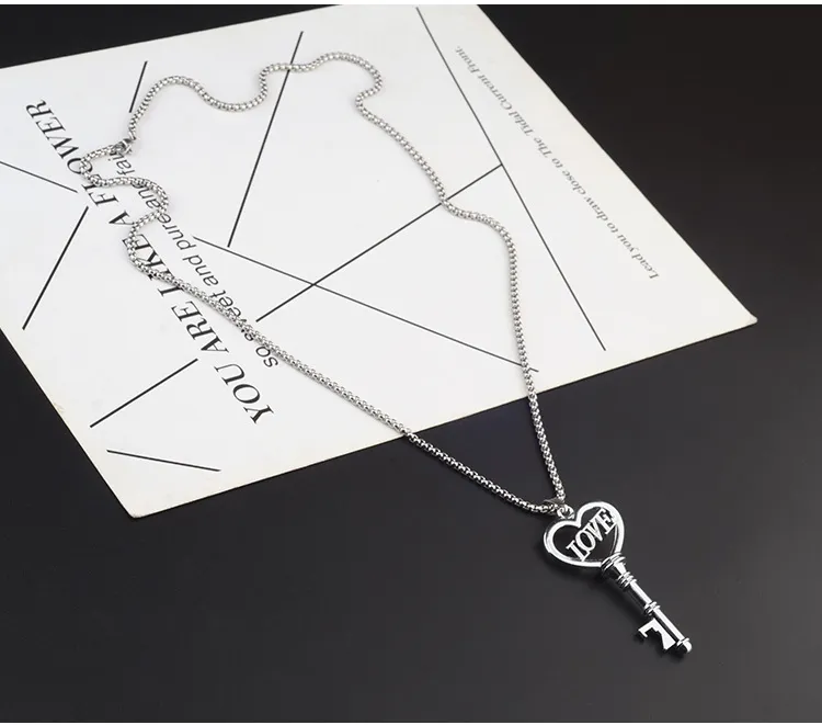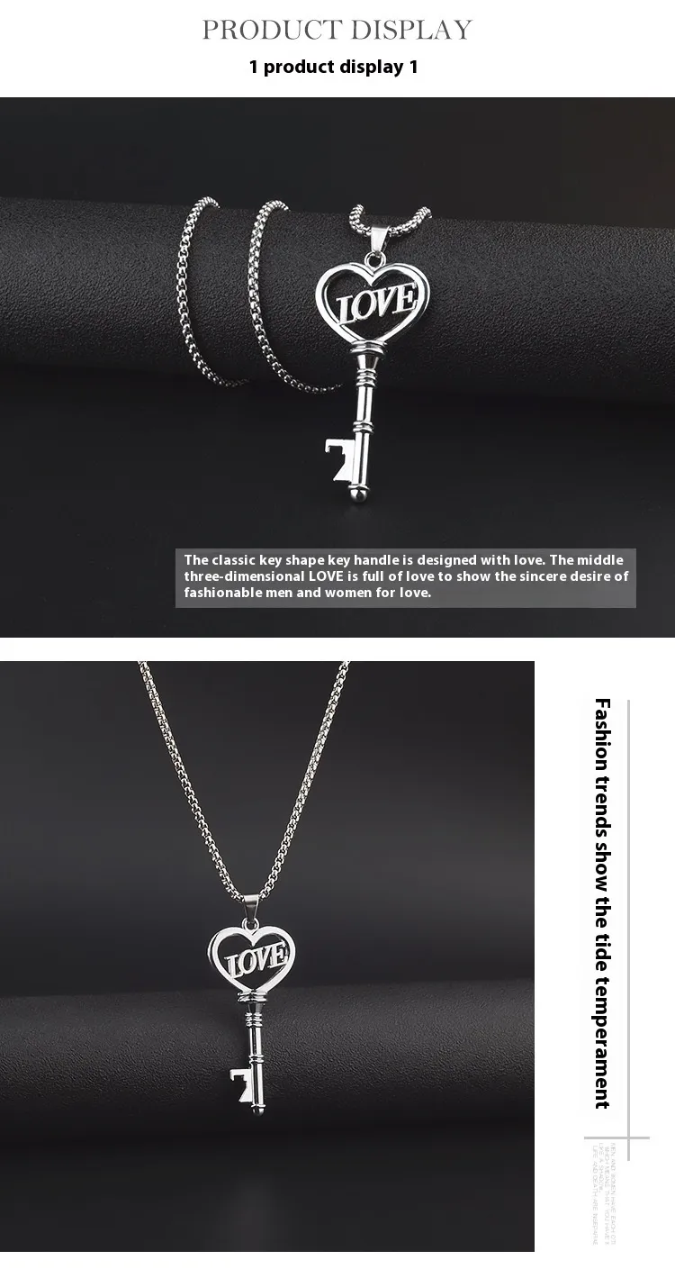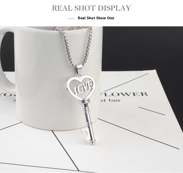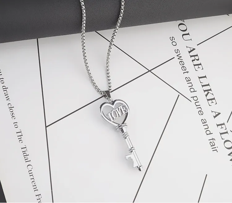 Stainless Steel Necklaces Sweet Heart Key Pendants