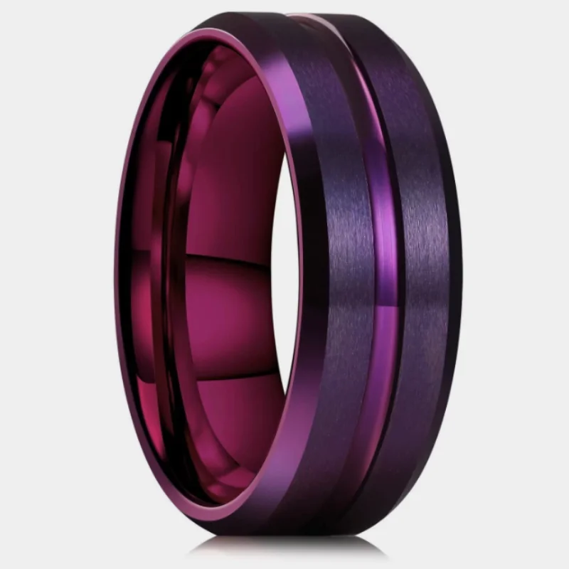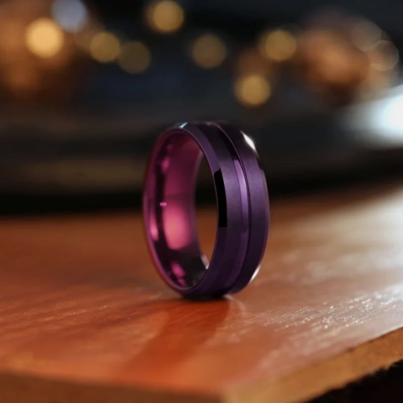 The 2025 Hot Selling Stainless Steel New Classic Fashion Purple Bevel Edge Slotted Ring for Men is a must-have piece for