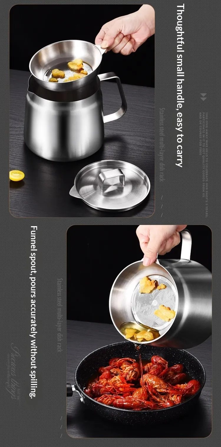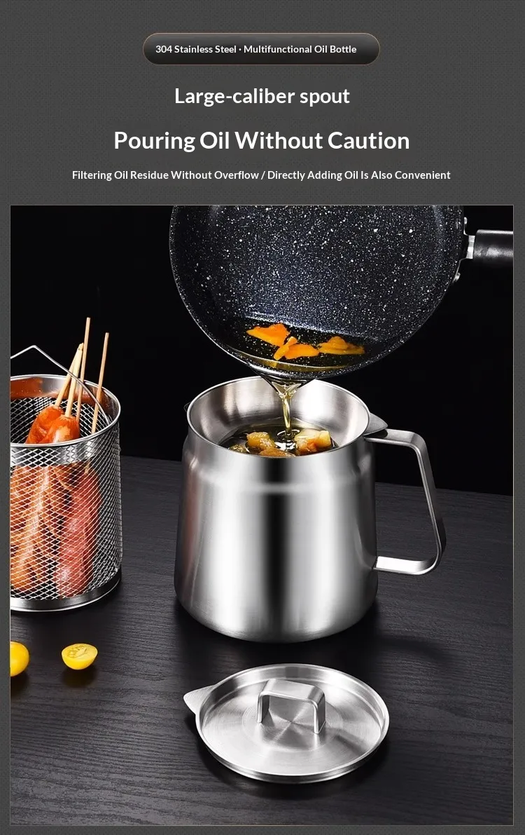 In conclusion, the Stainless Steel Oil Strainer Pot is a must-have kitchen accessory for anyone who values clean, healthy cooking. Its high-quality construction, fine mesh strainer, and ergonomic design make it the perfect tool for straining oils, broths, and sauces, ensuring a cleaner and more efficient cooking experience. Whether you're saving oil for reuse or preparing a smooth stock, this oil strainer pot is the reliable tool you need for a perfect kitchen. Upgrade your cooking routine with the Stainless Steel Oil Strainer Pot today!