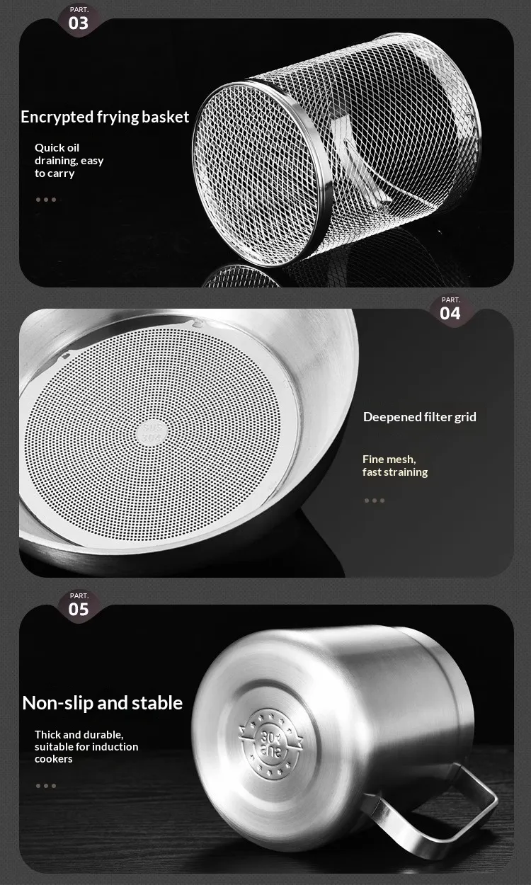- Fine Mesh Strainer: Effectively filters out food particles, giving you cleaner oil or broth.