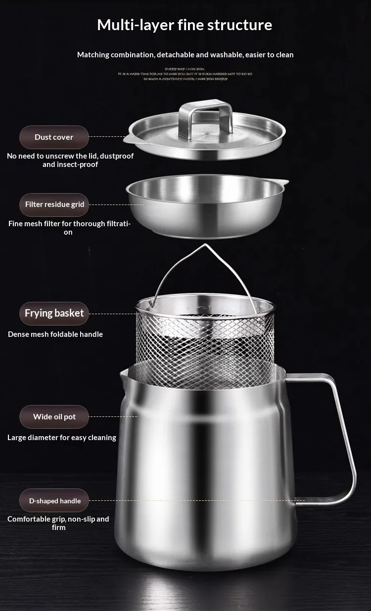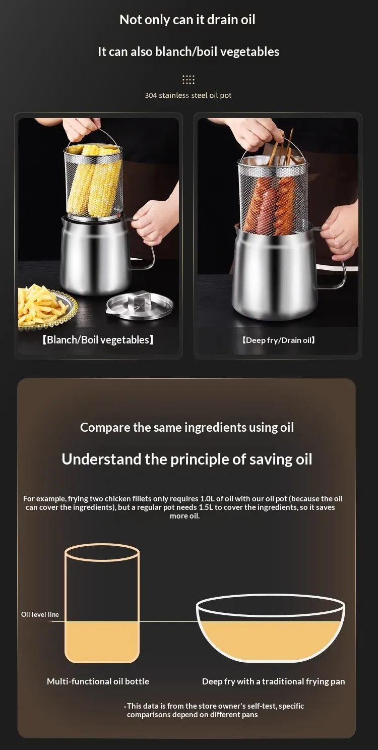 From straining oils after frying to filtering stock, this oil strainer pot is versatile and effective for various kitchen tasks. Its design makes it easy to use for all types of cooking, from frying to making sauces, ensuring that your kitchen tasks are handled with ease.