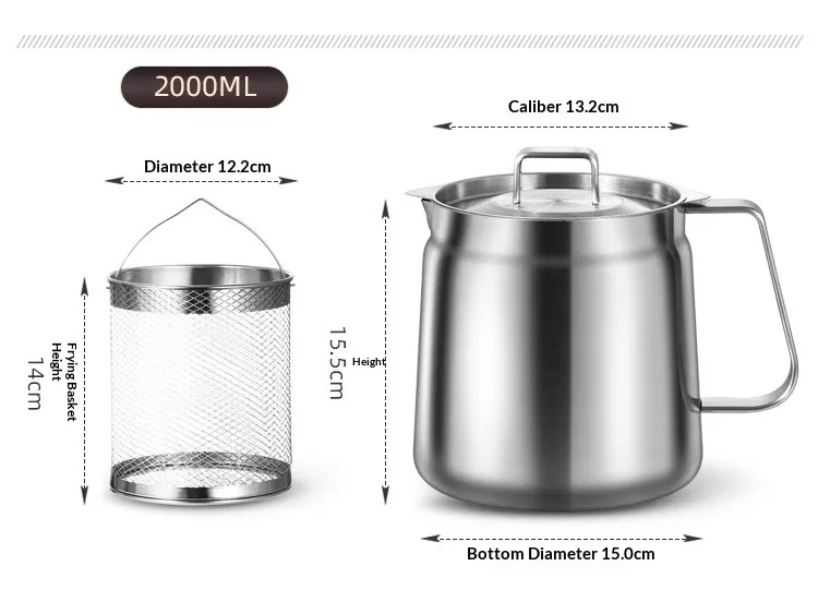[With filter, fry basket, and tongs] 304 stainless steel oil filter—1.5 liters; [With filter] 304 stainless steel oil filter—2.0 liters;