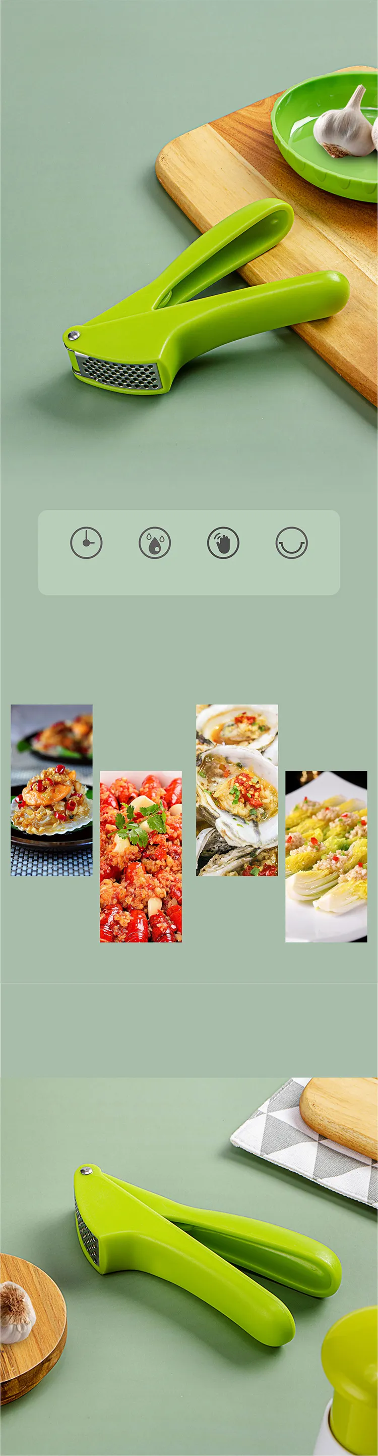 Make garlic and ginger prep quick and easy with the Stainless Steel Portable Non-slip Handle Kitchen Accessories Garlic Press. This multifunctional manual grinder is designed for both garlic and ginger, providing a powerful, effortless way to add fresh flavors to your dishes. With its ergonomic, non-slip handle and durable stainless steel construction, this kitchen tool is a must-have for home cooks and professional chefs alike.