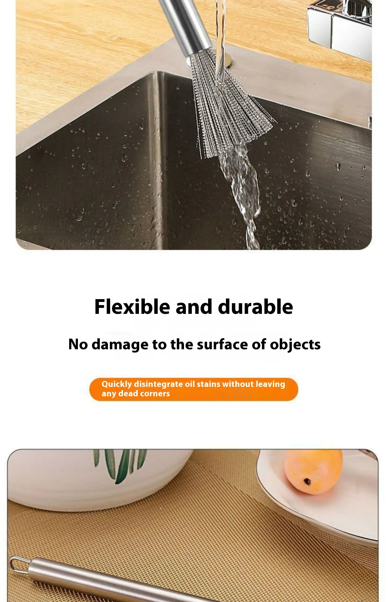 Designed for practicality, the brush offers a compact, easy-to-grip form that allows precise control during use. This makes it easier to target problem areas without excessive force. The open bristle structure allows food particles to rinse away easily, supporting better hygiene and faster cleaning between uses.