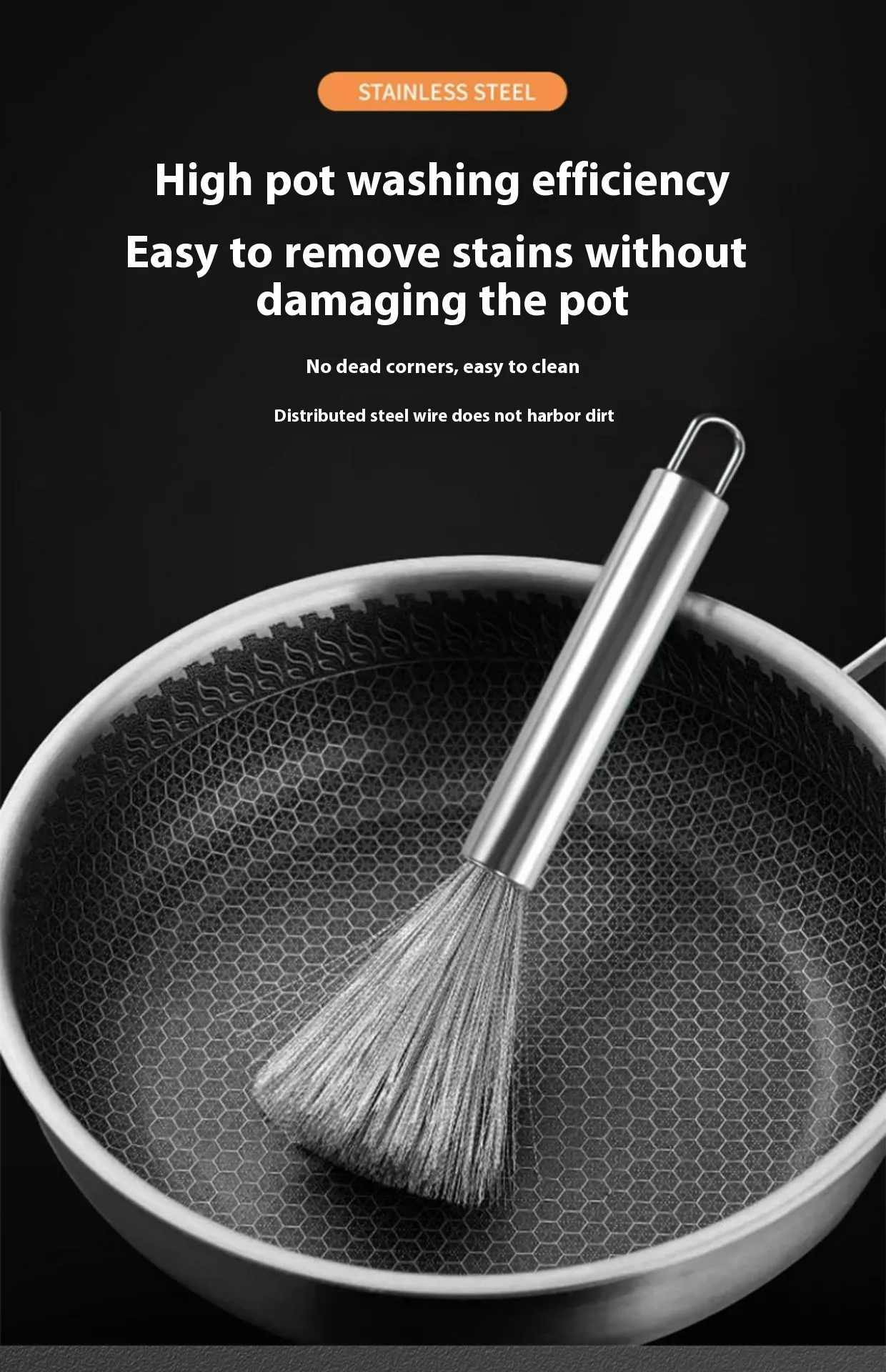 The Stainless Steel Pot Brush is designed for anyone who regularly deals with burnt food, grease, and stubborn residue on cookware. Ideal for stainless steel pots, cast iron pans, grills, and outdoor cooking gear, this brush delivers strong, consistent cleaning performance where ordinary sponges fail. It suits users who value durability, hygiene, and effective results in everyday kitchen cleaning.