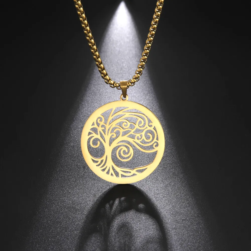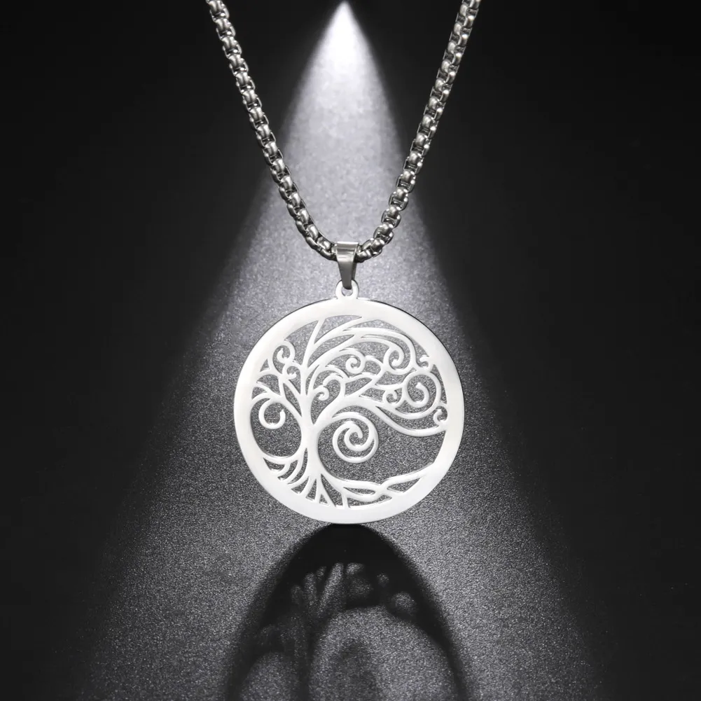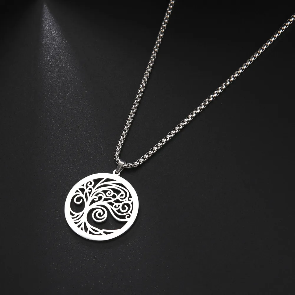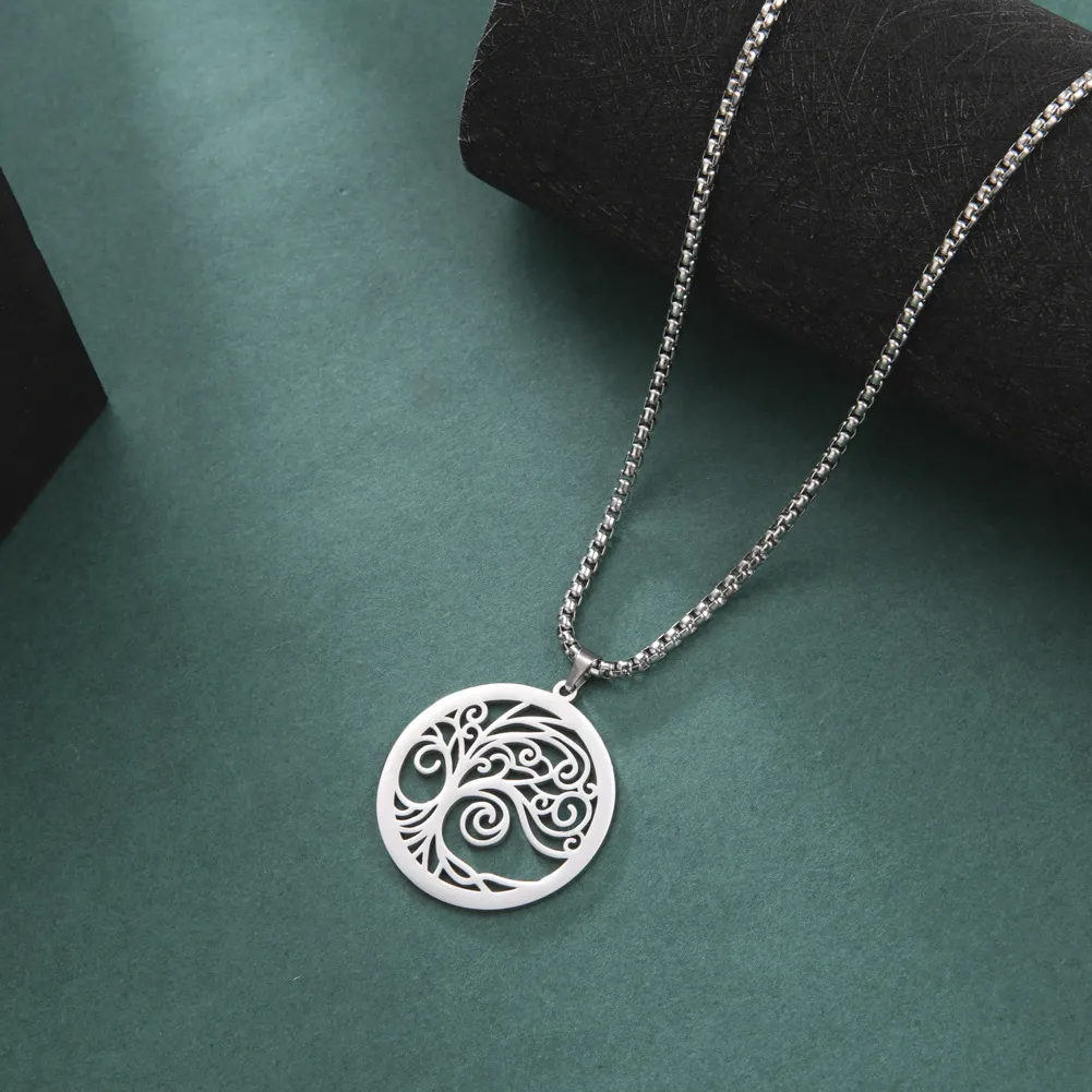 Stainless Steel Ring Hollow-out Side Bristle Tree Necklace