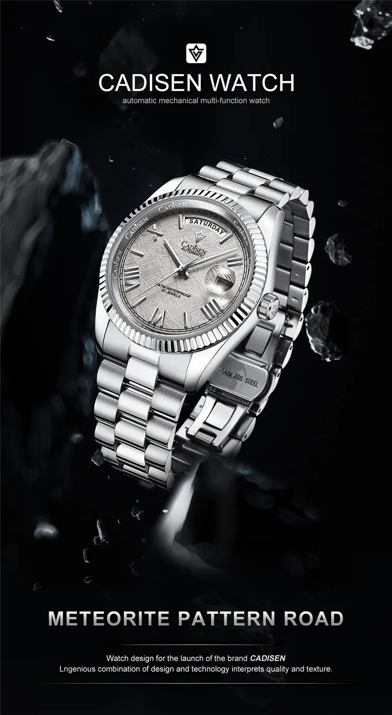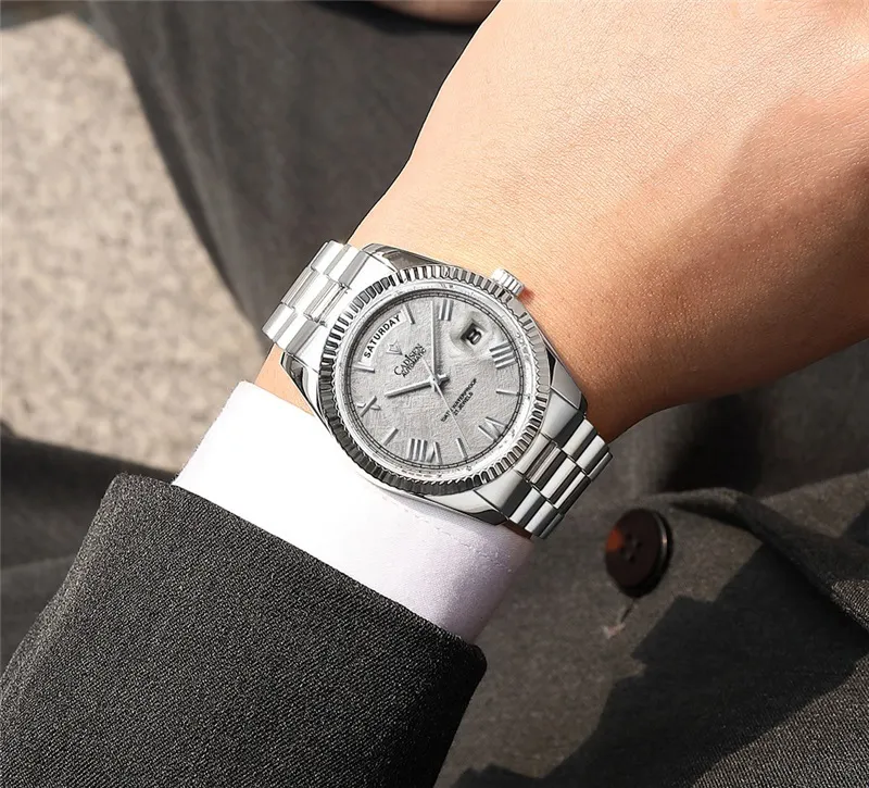 The Stainless Steel Shell Automatic Mechanical Men’s Sapphire Calendar Watch is a masterful combination of durability, style, and precise