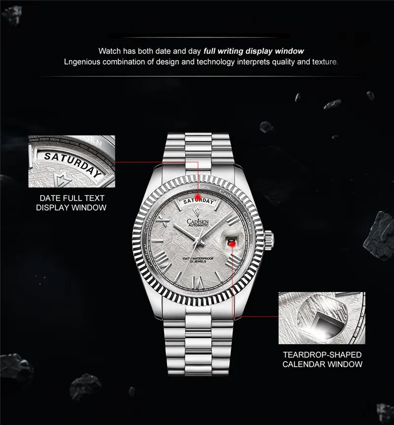 Steel Shell Automatic Mechanical Men’s Sapphire Calendar Watch is water-resistant up to 5 ATM, making it suitable for everyday activities