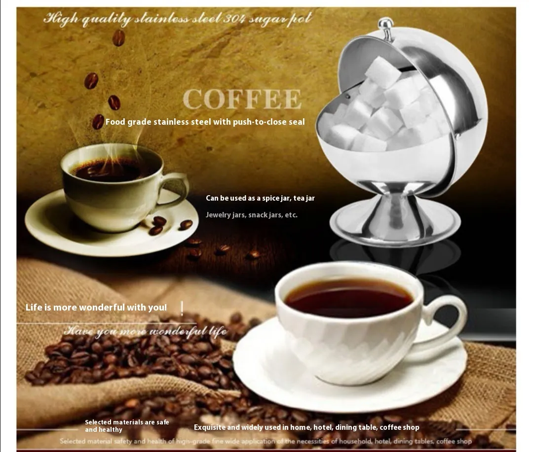Stainless Steel Spherical Flip Sugar Bowl Storage Tank