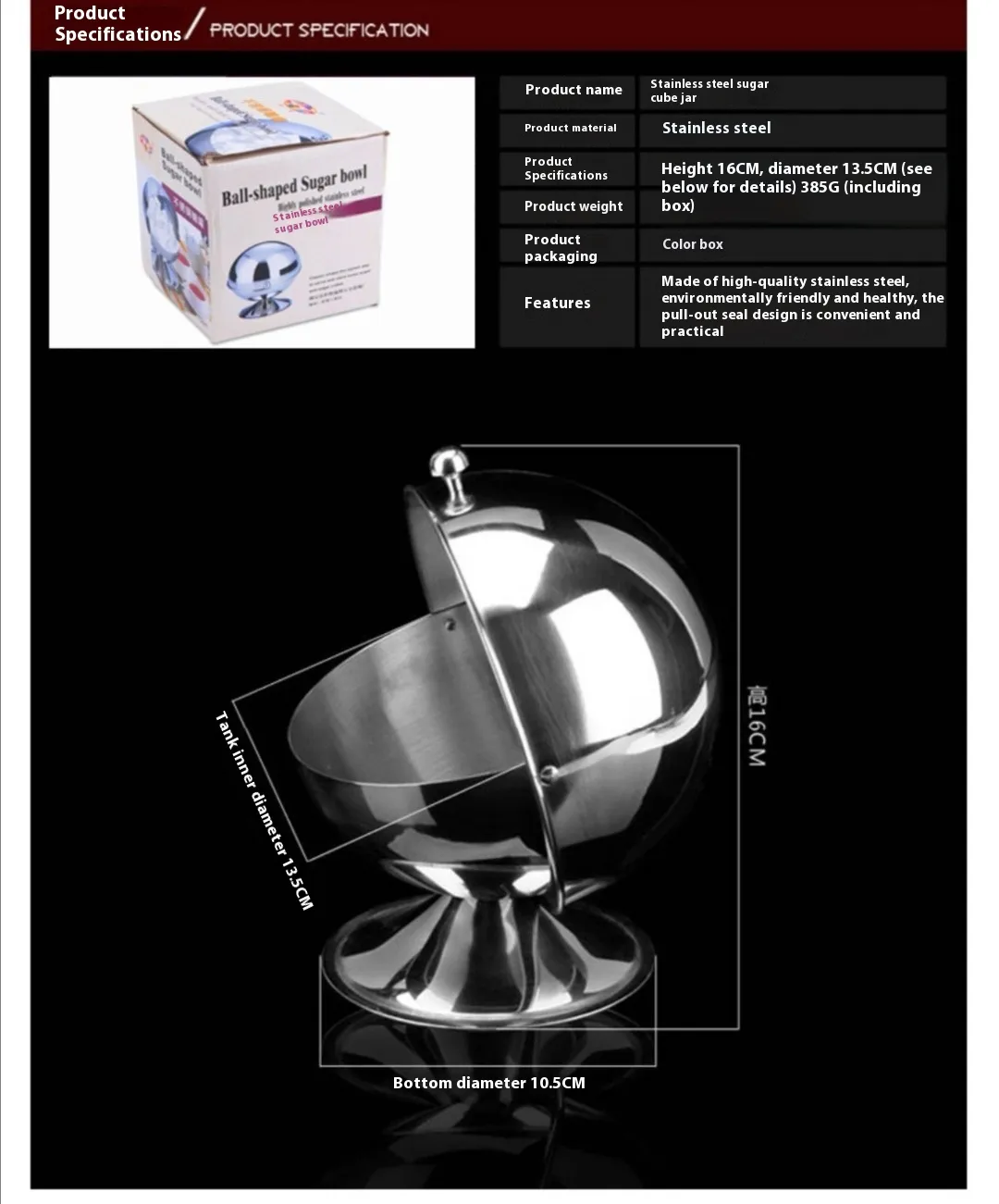 Name: stainless steel spherical Sugar Bowl, seasoning jar