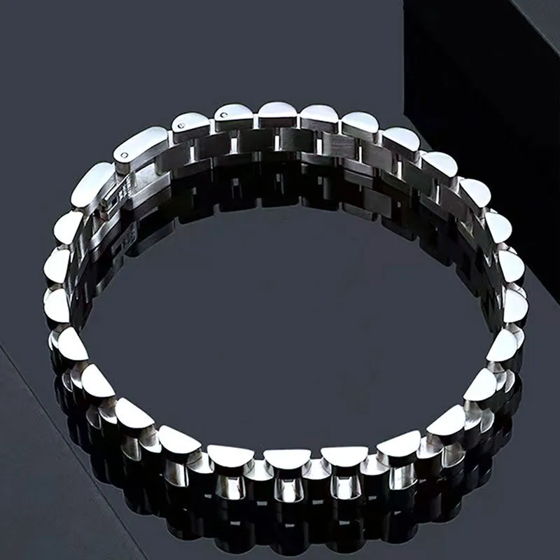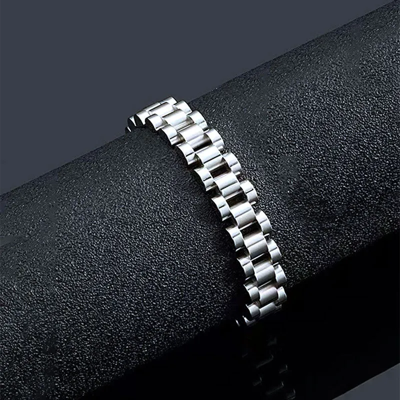 Crafted from high-grade stainless steel, this watch band bracelet is resistant to rust, tarnish, and everyday wear. Its smooth, polished links add a sophisticated touch while maintaining lightweight comfort. Designed for both men and women, the adjustable length ensures a perfect fit, making it suitable for wrists of different sizes.