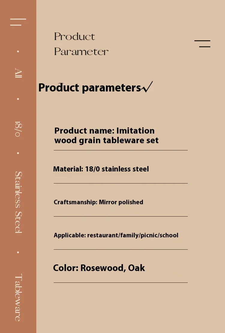 Color: oak wood grain main knife, oak wood grain fork, oak wood grain main spoon, oak wood grain auxiliary fork, oak wood grain auxiliary