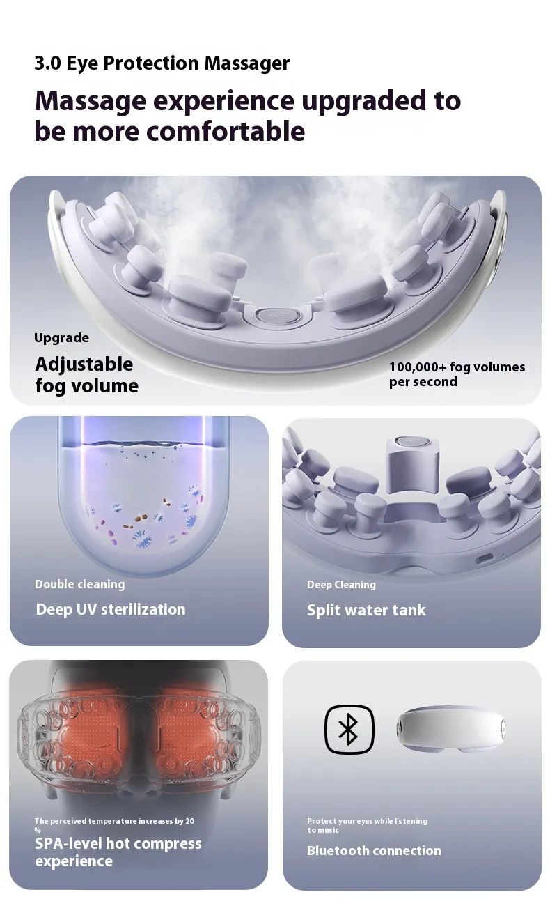 Experience the future of eye care with the Steam Smart Eye Moisturizing Instrument, a revolutionary device designed to combat eye fatigue, dryness, and puffiness with advanced features including Bluetooth music, warm steam therapy, and intelligent temperature control. This portable and stylish eye massager is perfect for busy professionals, students, and anyone in New Zealand looking for a moment of relaxation.