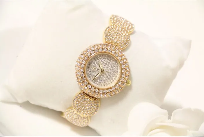 - Full Diamond Design: Sparkling diamonds cover the entire watch face and bezel for unmatched luxury.
