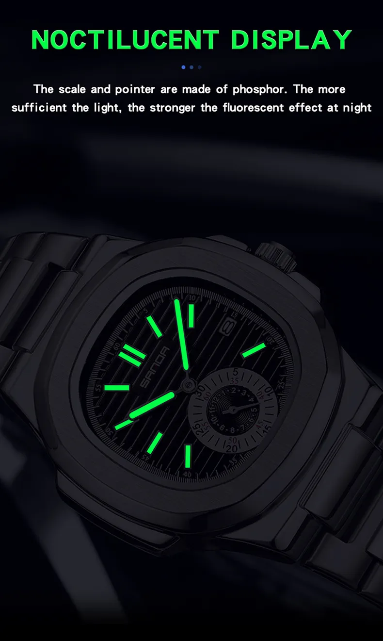 - Luminous Markers: The watch’s markers are also luminescent, providing a complete, easy-to-read display.