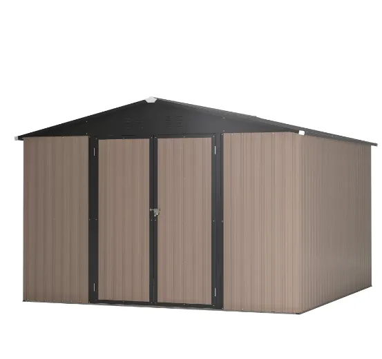 【Durable & Sturdy Outdoor Sheds Storage】- Storage Shed 10' x 10' . Durable construction with galvanized steel reinforcement makes this durable metal outdoor storage shed rustproof and UV-resistant. Overlapped wall panels features with waterproof and moister-resistant, worry-free for all weather condition use.