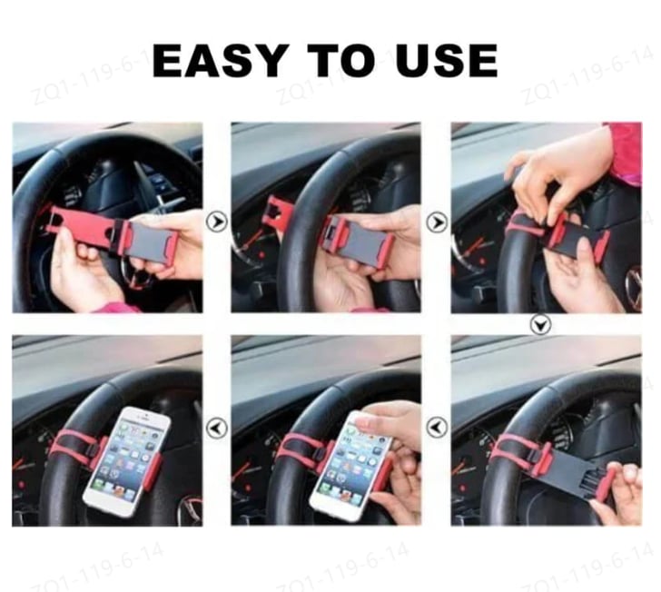 The Steering Wheel Phone Holder is a simple and practical device that allows you to securely mount your phone on your steering wheel, giving you easy access to your device while keeping it within your line of sight. Designed to be compatible with most phones and steering wheel sizes, this phone holder provides a hands-free solution to using your phone while driving, making it easier to follow GPS directions, make calls, or listen to music without compromising your safety.
